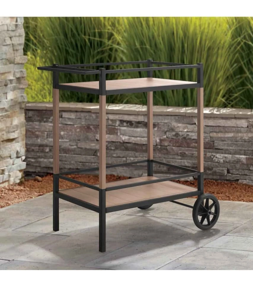 BRAND NEW IN BOX $80 MODEL NUMBER A217008010 Rust resistant steel frame with black powdercoat frame with decorative brown wood grain finish. Two wheels for easy move everywhere even while carrying haevy things. Rust resistant steel frame Black powdercoat frame with decorative brown wood grain finish Two wheels for easy mobility
