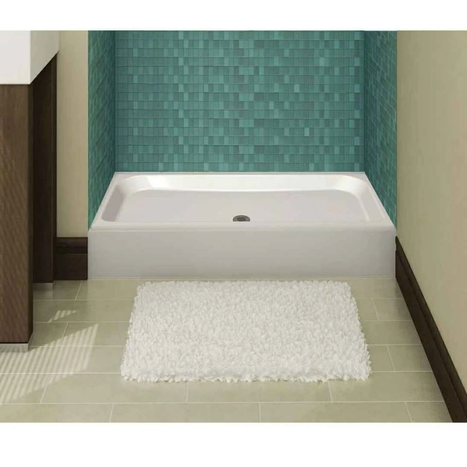 MAAX Alaska 60L x 32W x 7H Rectangular Centre Drain Fibreglass Shower Base Pan in White BRAND NEW IN BOX $415 MODEL# 101407-000-002-000 MAAX Alaska fibreglass/gelcoat shower base is great for remodelling or construction projects. Fibreglass/gelcoat bases offer a good quality/price alternative. Fibreglass is sturdy and easy to clean. Installation is simple. Base features center drain, integrated tiling flange, and textured floor. The Alaska offers modern styling with sharp angles and minimalist features. Proudly made in Canada Textured floor for added safety, easy walk-in and walk-out of your shower and peace of mind Model Size : 60 in. L x 32 in. W x 7 in. H Made with MAAX's AcrylX Applied Acrylic, this stall has a superior luster, truer white finish that is more resistant and will maintain a "factory new" look over its lifetime Convenient center drain for renovation projects Integrated leak-proof tiling flanges without worries about leakage or infiltration Installed directy to the studs for a long-lasting and secure installation Can be used with Alaska shower wall kit or ceramic tile application All mounting hardware included.