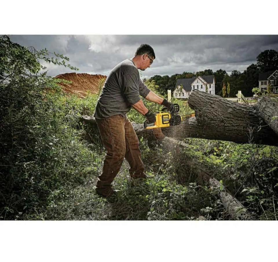 BRAND NEW IN BOX $300 MODEL NUMBER DCCS670B TOOL ONLY! The DEWALT 60V MAX Chainsaw features a low kick back 16-inch Oregon (R), Bar and Chain for both construction and outdoor cutting applications. Its tool-free chain tensioning and bar tightening knob enable proper bar clamping force, and it features auto-oiling for continuous lubrication. Battery and charger sold separately. Low kick back 16-inch Oregon bar and chain for construction and outdoor cutting applications Auto-oiling for continuous lubrication Quarter-turn oil cap for quick oil re-fills Up to 70 cuts per charge on a 6-inch x 6-inch pressure treated pine wood Chain brake for kick back protection Tool-free chain tensioning and bar tightening knob for proper bar clamping force Includes hard bar cover Ideal for construction and outdoor cutting applications Replacement chain (DWO1DT616T) and bar (DWZCSB16) sold separately Best used with Battery Models DCB609 or DCB609-2. Must be purchased separately and is not included.