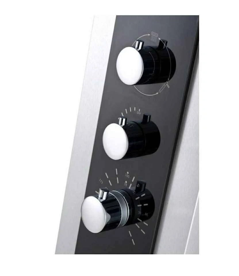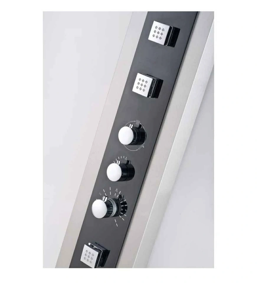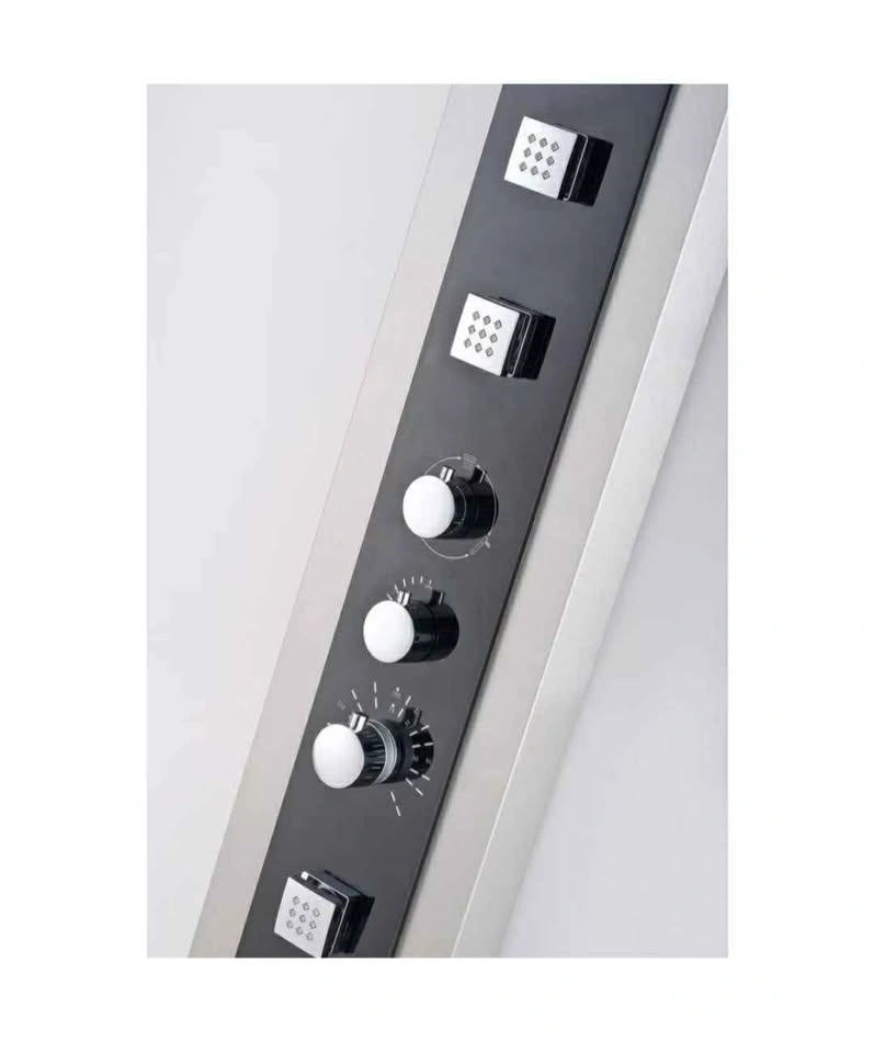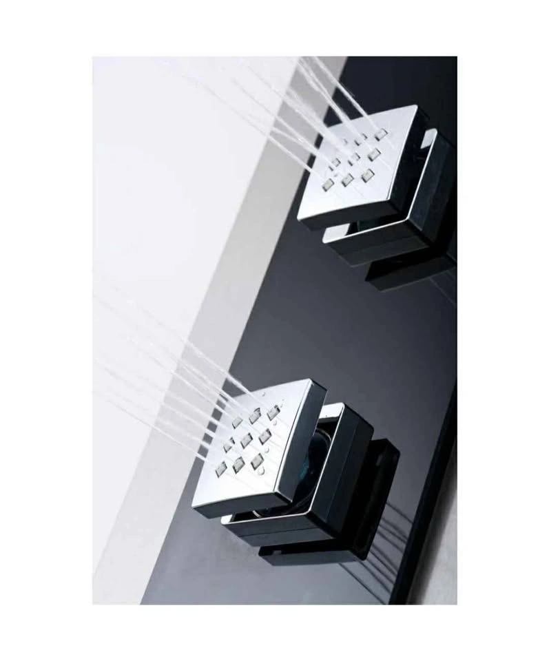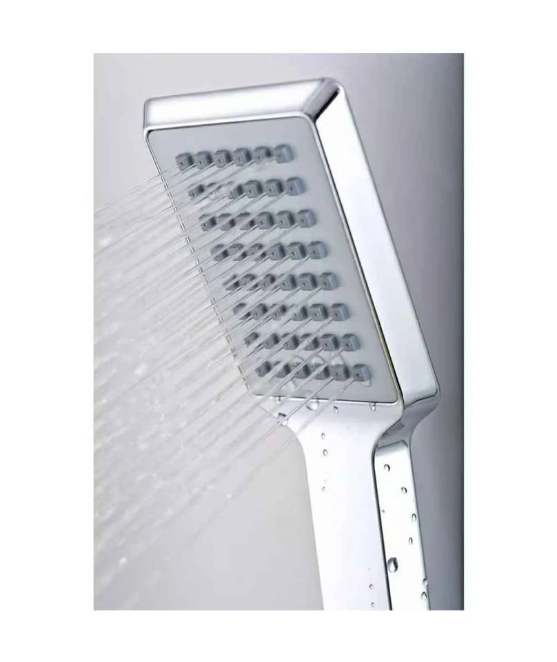BRAND NEW IN BOX $590 MODEL NUMBER SPGL306 The Aston Stainless Steel and Glass 57 in. 4-Jet Shower System is an elegant solution for all of your showering needs. Beautiful in design and durable construction, this unit will be a long-lasting focal point of any style bathroom. With its many features, including the overhead rainfall shower, convenient hand shower and 4 directional water jets, you are promised a relaxing showering experience. The user-friendly panel provides a thermostatic valve, a diverter valve and an on/off valve to allow you to engage as desired. 6 water outlets, including an 8 in. overhead rainfall shower, convenient hand shower and 4 directional body jets, allowing for a unique shower experience each time Constructed of durable glass and stainless steel with anti-fingerprint application to provide for a cleanly appearance Equipped with thermostatic valve to maintain constant water temperature Pre-plumbed shower system is designed for minimal assembly and equipped with a pre-installed, 3-function diverter valve allowing for an easy change between the showerhead, hand shower and body jet function Resists corrosion and tarnishing for long-lasting durability Installation requires plumbing into the wall to connect to existing hot and cold supply lines; connection requires 3/8 in. male compression threads; cUPC certified