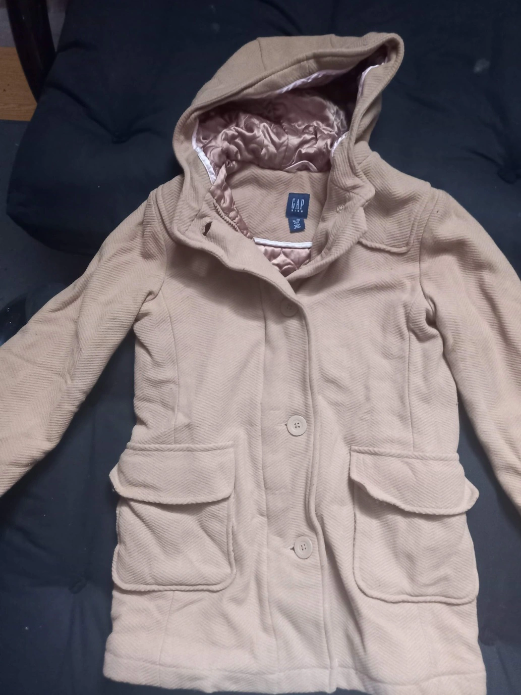 Selling a cute GAP Kids coat in a neutral beige colour! It has a hood and front pockets, perfect for keeping warm. Size is 14.