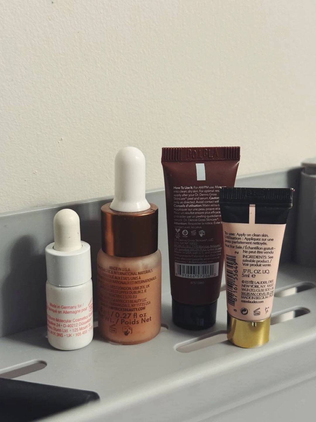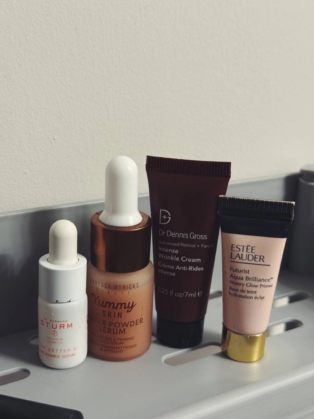 🧡Decluttering my beauty shelf and giving a second life to my luxury and professional skincare & makeup products. All items are authentic, in great condition, and carefully stored. I have already chosen the lowest possible price for each product, and since this is a bundle deal, I also added an extra discount. That’s why the price is final (last price) – no offers, no bargaining. 1️⃣ Beauty Tools (2 pcs – Silver face roller + Pink microneedle roller) – Skincare massage & microneedling tools. Great condition 2️⃣ Dior Capture Totale Super Potent Eye Serum (20 ml, full size) – Luxury anti-aging eye serum. Used ~60% • Original: ~CAD $125+tax 3️⃣ REFY Brow Sculpt (full size) – Clear sculpting brow gel. Used ~50% • Original: ~CAD $32+tax 4️⃣ Tom Ford Lip Color (mini size, 3 g) – Luxury creamy lipstick. Used 1 time with lip brush • Original: ~CAD $76 + tax for full size 5️⃣ Charlotte Tilbury Airbrush Flawless Finish Powder – Shade 2 Medium (mini mini size ) – Iconic pressed powder. Just tried • Original: ~CAD $65+tax 6️⃣ NARS Velvet Matte Lip Pencil (mini) – Creamy matte lip pencil. Used ~20% 7️⃣ The Ordinary Squalane Cleanser (50 ml) – Gentle squalane-based cleanser & makeup remover. Used 1 time 8️⃣ Dr. Barbara Sturm The Better B Niacinamide Serum (5 ml, mini) – Pore-refining and texture-improving serum. New • Original: ~CAD $36+tax 9️⃣ Danessa Myricks Yummy Skin Water Powder Serum (8 ml, mini) – Priming & mattifying serum. New 🔟 Dr. Dennis Gross Retinol + Ferulic Intense Wrinkle Cream (7 ml, mini) – Retinol & ferulic anti-aging cream. 1️⃣1️⃣ Estée Lauder Futurist Aqua Brilliance Primer (5 ml, mini) – Radiance-boosting primer.