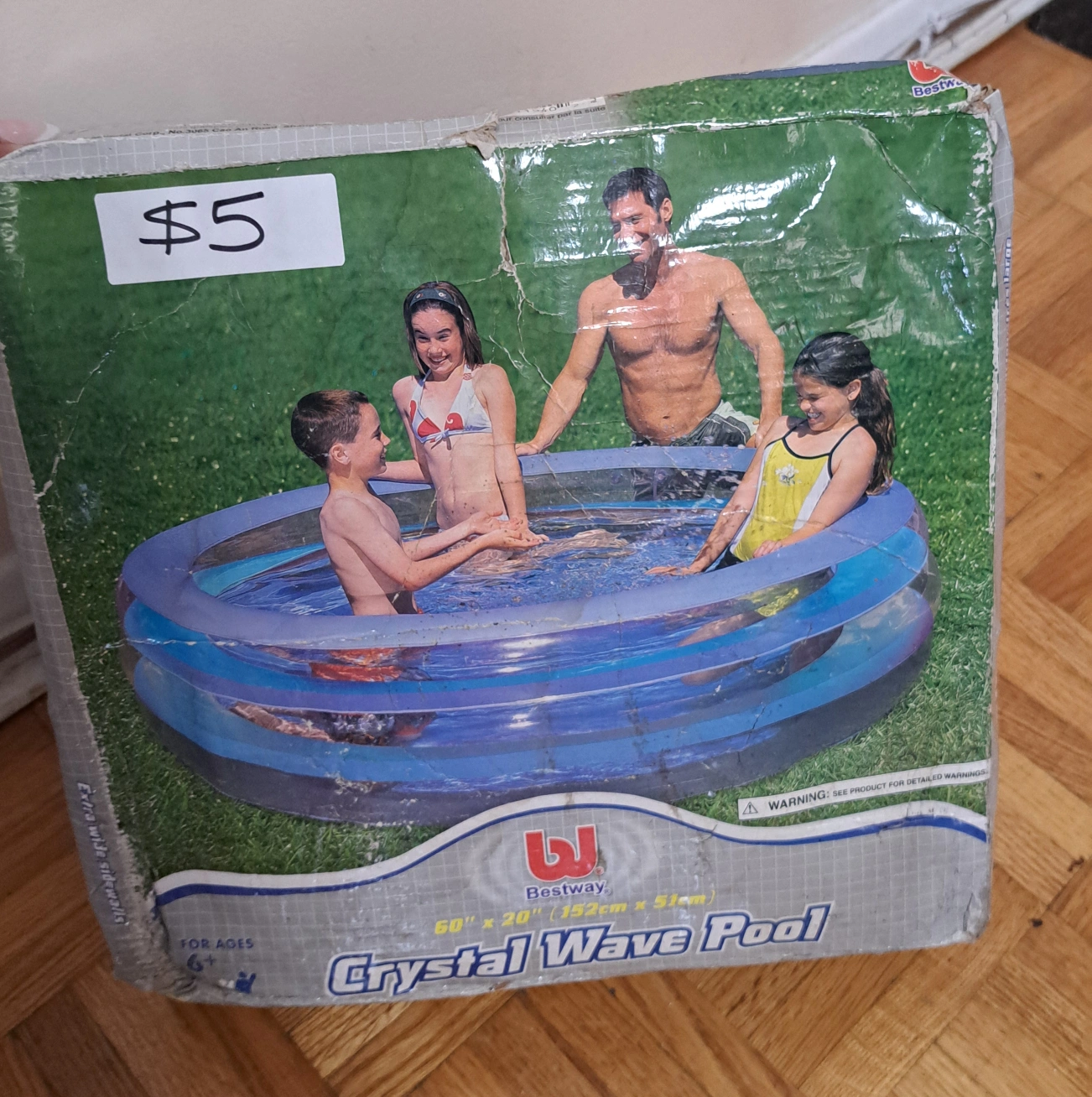 Selling a Bestway Crystal Wave Pool! It's 60 inches by 20 inches (152cm x 51cm). Perfect for kids aged 6 and up to cool off in the summer. The box is a bit worn, but the pool itself is brand new!