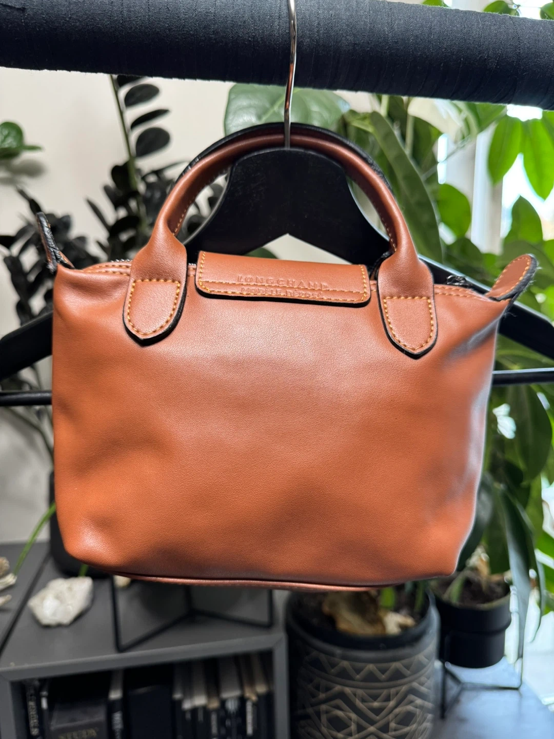 Longchamp Le Pliage Mini Leather Hand Bag - Deep Brown