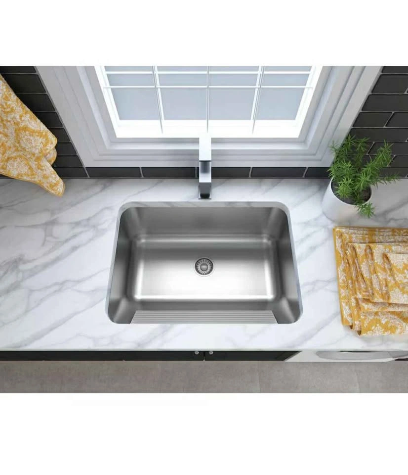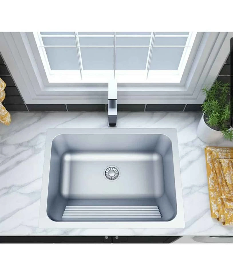 Italia Collection Dual Mount Stainless Steel 24-inch Laundry Sink with Built-in Washboard in Soft Satin BRAND NEW IN BOX $485 MODEL NUMBER LA186100 Crafted from premium stainless steel that is durable, elegant, and antimicrobial ensuring a cleaner environment. With generous depth to accommodate the bulkiest loads and still minimize splashing. This sink is built to withstand the demands of daily use, making it a long-lasting investment for your home. The built-in washboard adds extra cleaning power for tough stains and delicate fabrics. Increase the lifespan of your favorites and enjoy more precise stain removal without the wear and tear of regular use of a washing machine. You can wash clothes as needed without waiting for a full load. It's convenient, space-saving, and efficient. We've incorporated sound-absorbing pads and a special paint underneath the sink to reduce noise, ensuring a quieter and more pleasant experience. Meticulously crafted in Europe with a heritage of precision engineering and craftsmanship. Each sink is manufactured to the highest standards of quality and durability. Stylish, functional, innovative European craftsmanship 18 gauge thickness and type 304 composition stainless steel designed to withstand heavy usage and resist corrosion ensuring longevity Stainless steel's antimicrobial properties make it resistant to bacteria growth, promoting a cleaner and safer environment Elite sound dampening technology applied to the underside of sink to reduce noise Added convenience and benefits of state of the art built-in washboard design 10" bowl depth allows for larger capacity and less mess.