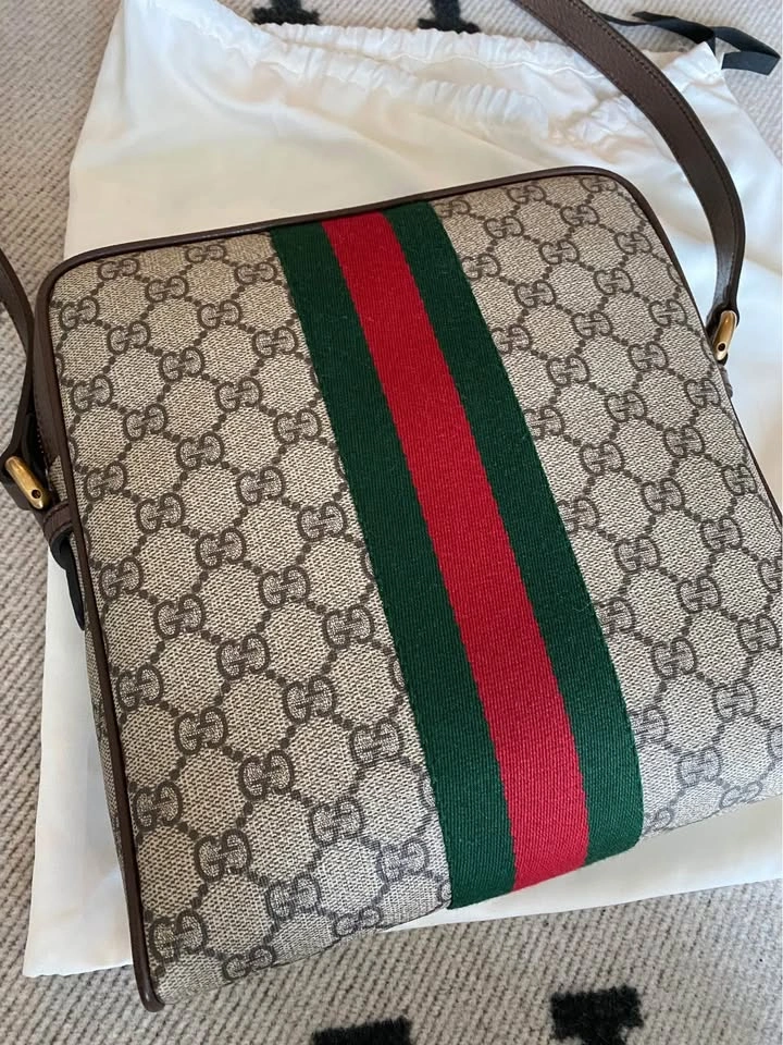 Selling an Authentic Gucci GG Ophidia messenger bag, complete with its iconic design and signature leather stripe. This bag is in brand new unworn condition. Perfect for adding a touch of luxury to any outfit. The Ophidia GG Messenger bag enhances the line's vintage appeal, with the GG motif and Web stripe paying homage to Gucci's roots. Features: Purchased on Ssense.com with online records and Stickers. 100% Authentic Guaranteed. Demensions: 24cm X 23cm X 10cm Made in Italy - Beige/ebony GG Supreme canvas - Brown leather trim - Gold-toned hardware - Green and red Web - Double G Signature Logo - Front zipper pocket - Interior open pocket - Adjustable shoulder strap - Zipper closure - MSRP: $2400 CAD Available? Absolutely! If the ad is up, the bag is ready for a new home!