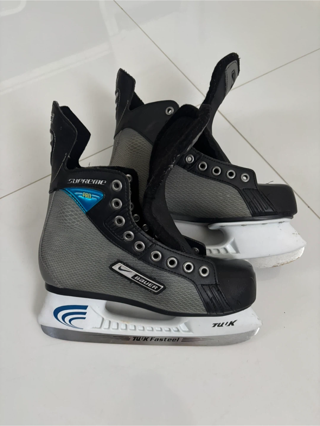 Selling a pair of Bauer Supreme Pro hockey skates. They are in good condition and ready for the ice. Check out the photos for details! No laces and insoles. Size 4