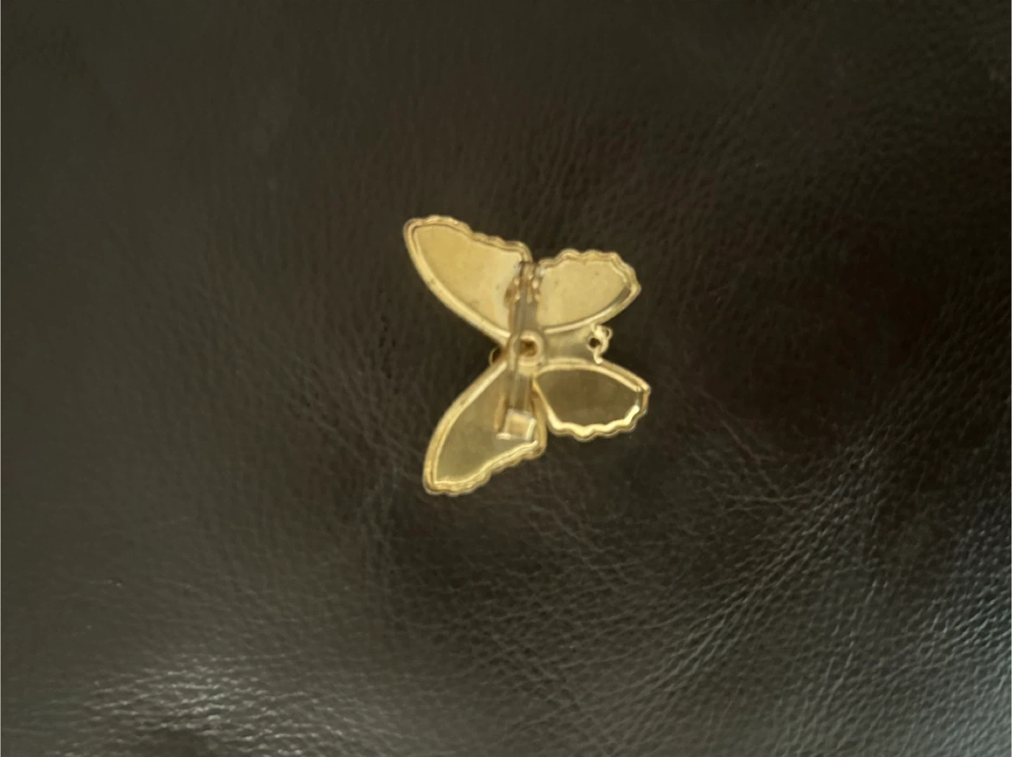 A lovely butterfly pin with intricate details in red and gold tones! This unique accessory is perfect for adding a touch of elegance to any outfit or bag. It's in great condition and ready to find a new home