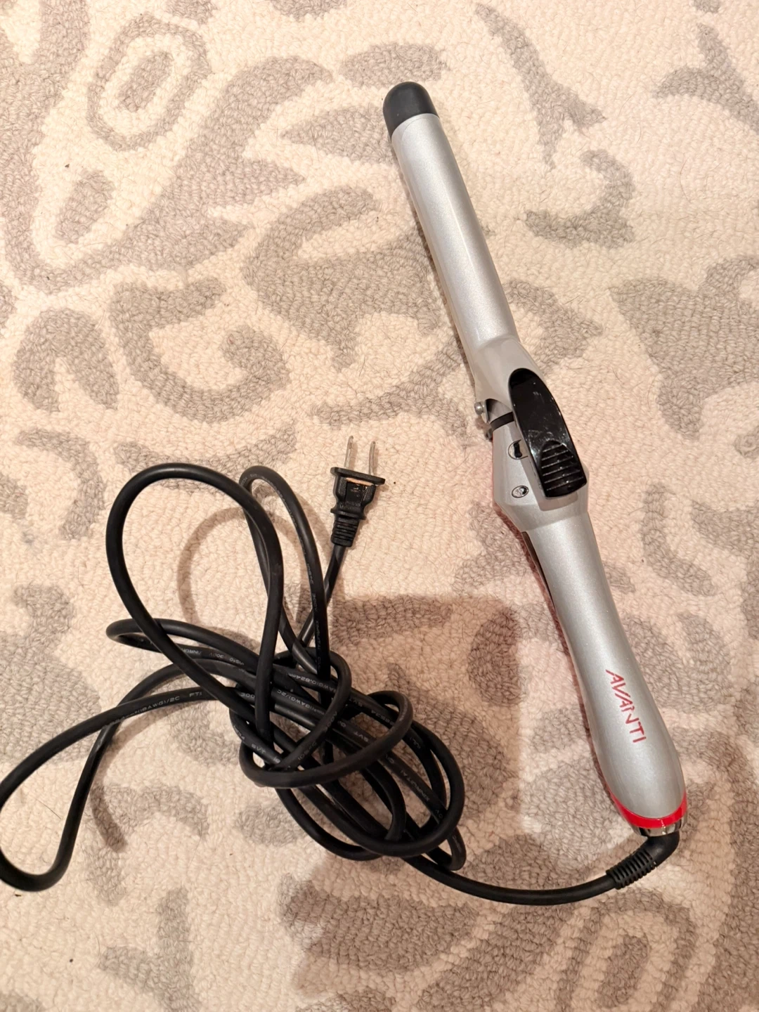 Selling an Avanti hair curling iron! It's in great shape and ready to give you those perfect curls. The curling iron is red and silver.
