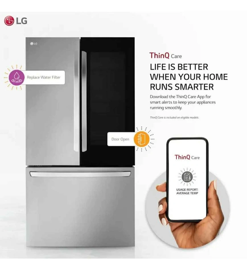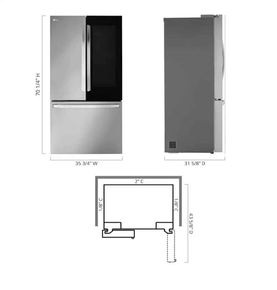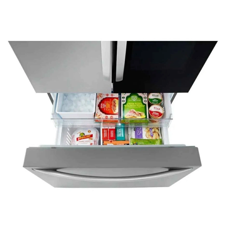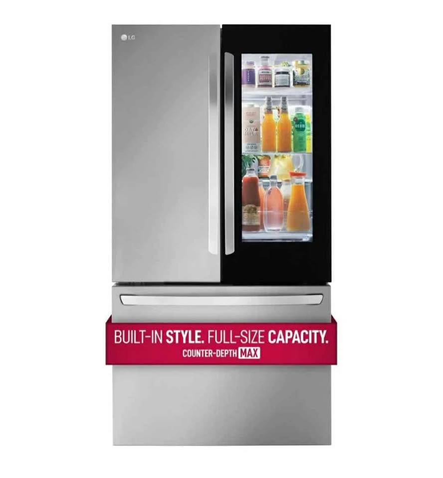 LG Electronics 36-inch W 27 cu. ft. SMART InstaView Counter-Depth MAX French Door Refrigerator in Stainless Steel BRAND NEW IN PLASTIC $1495 MODEL NUMBER LRFGC2706S The industrys largest counter-depth fridge capacity. Stock up on everything you need and enjoy 25% more space for your family's favorite food and drinks. Only the LG Counter-Depth MAX delivers the 27 cu. ft. capacity of a standard-depth fridge in a counter-depth design. 27 cu.ft. InstaView Counter-Depth MAX French Door Refrigerator Store more food with our Ultra-Large Capacity (27 cubic feet) refrigerators: Built-in style. Full-size capacity. Stock-up and store everything you need. With a cavernous 26 cubic feet of space, this LG French Door refrigerator gives you ample space for all of your family's favorite foods and keeps them conveniently organized and within reach. Edge-to-Edge InstaView Design: Knock Twice to See Even More than Before. Our latest InstaView window is 23% larger with a tinted, frameless edge-to-edge designso now you can see even more with just two quick knocks on the glass panel. See your favorites in an instant without ever opening the door, from drinks to frequently used condiments to snacks for the kids. Factory installed Automatic Icemaker: Our built-in icemaker automatically makes ice cubes, so that you always have ice on hand for those hot summer days or when entertaining at home. Fresher is Better with Door Cooling+: LG took its Smart Cooling system one step further by adding Door Cooling+ to provide a steady supply of cold air to help keep door contents at peak freshness. *Based on LG's internal test results comparing time for the temperature of the water container placed in the top basket to drop between DoorCooling+ and Non-DoorCooling+ models. Applicable models only. DoorCooling+ is supposed to stop when the door is opened. Stylish design you can't wait to get your hands on: LG's Smudge Resistant finish resists fingerprints and smudges for a distinctive kitchen that handles real-life in style. It easily wipes clean, so the only lasting impression is your excellent taste.