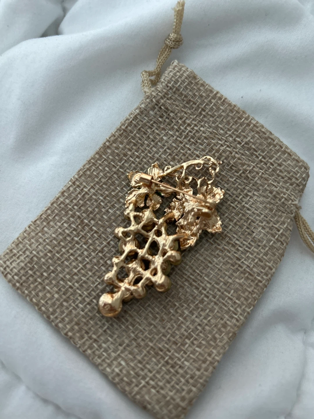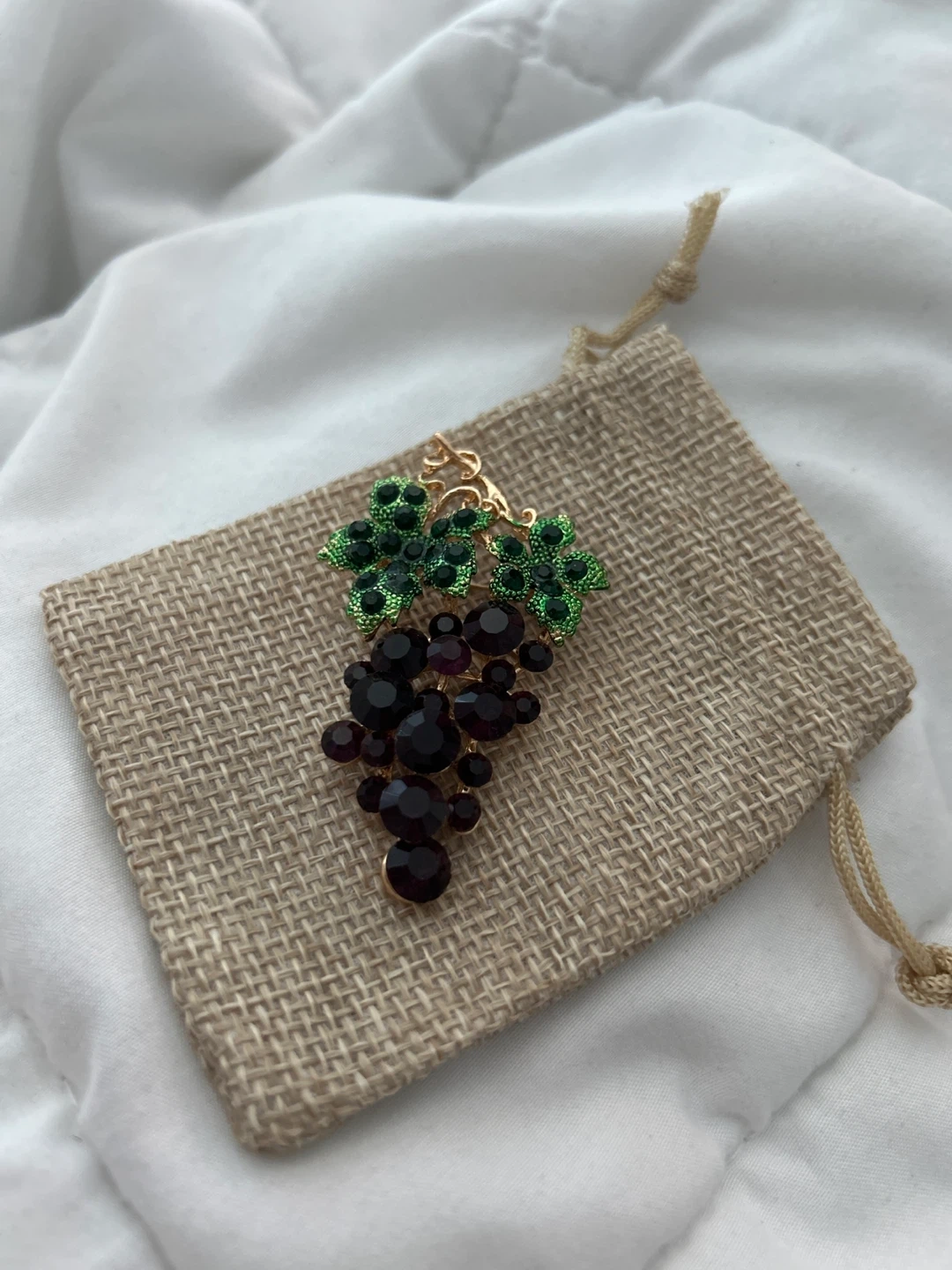 Selling a lovely grape vine brooch! It features dark purple/black beads for the grapes and green beads for the leaves. It's in great condition and comes with a small pouch Comes in dust bag Stunning Brooch please respect pricing God bless!