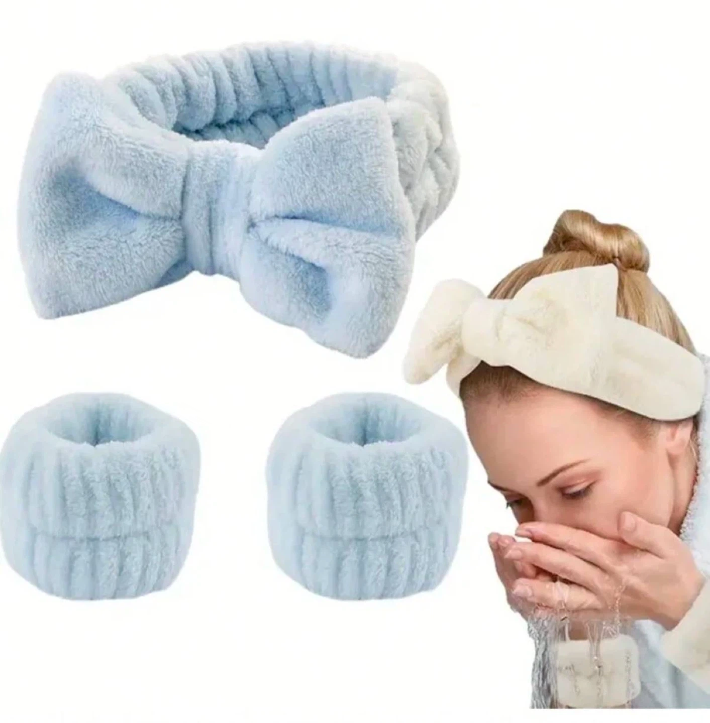 Decluttering for my moving sale! ✨ 📍All prices reduced — quick pickups available near St. George Station, Sheppard West Station, or any stop from Broadview to Victoria Park. ❤️Bundle 5+ items for a discount! 💫 ✅ New Soft and absorbent headband and wristbands. Perfect for washing your face or applying makeup. Set includes one headband and two wristbands. Available in blue.