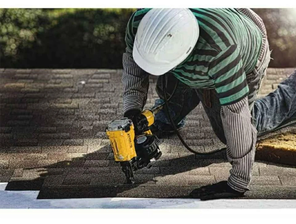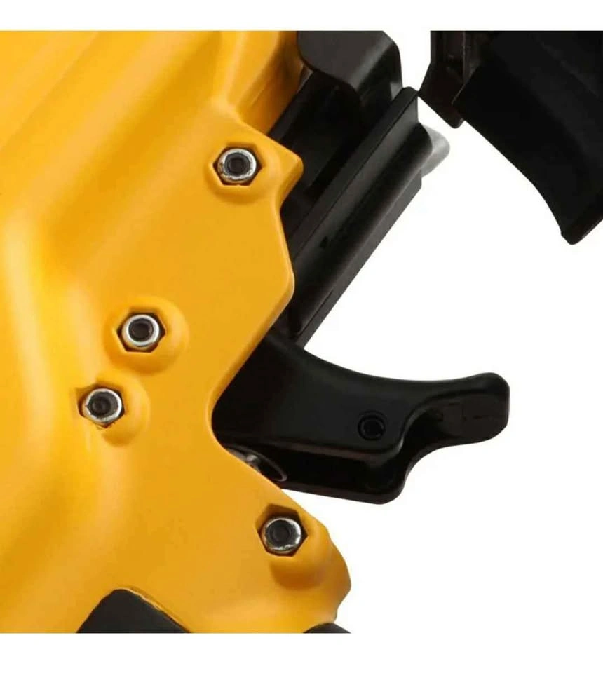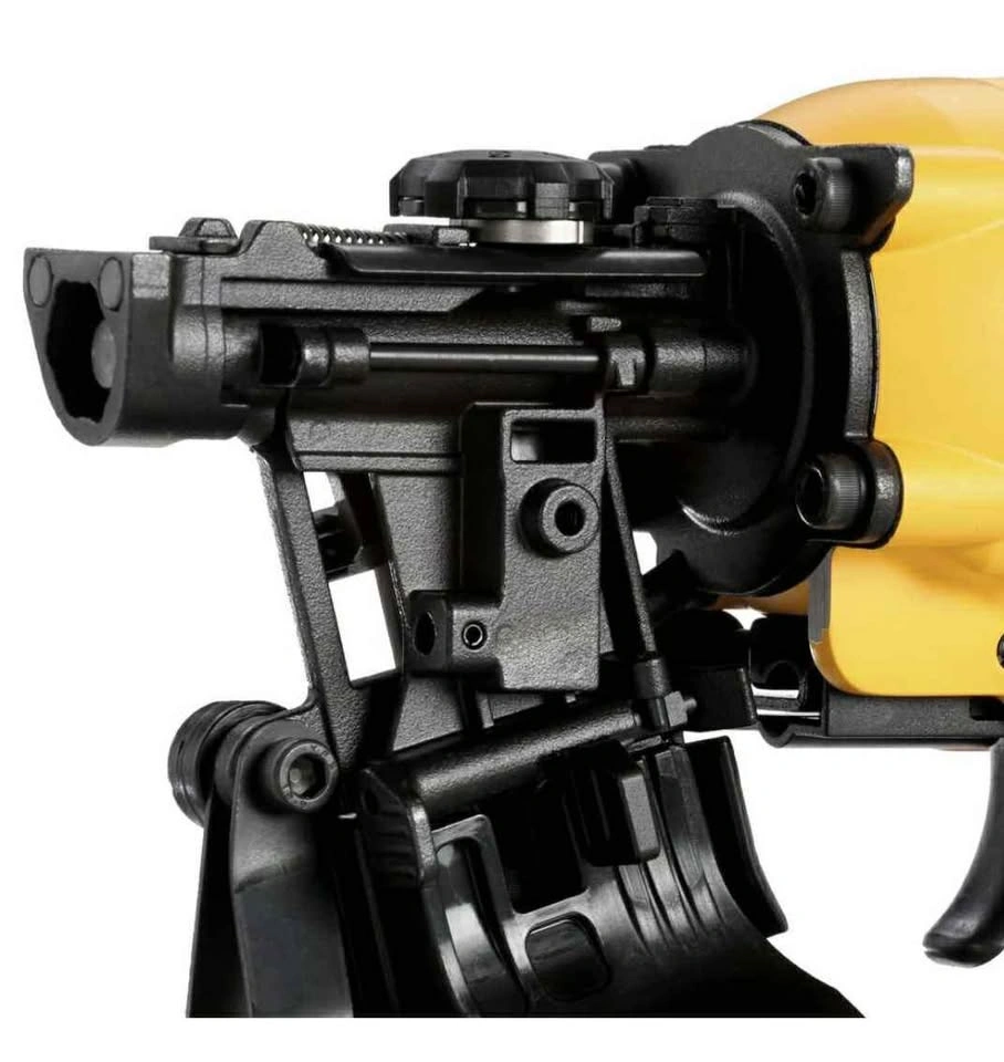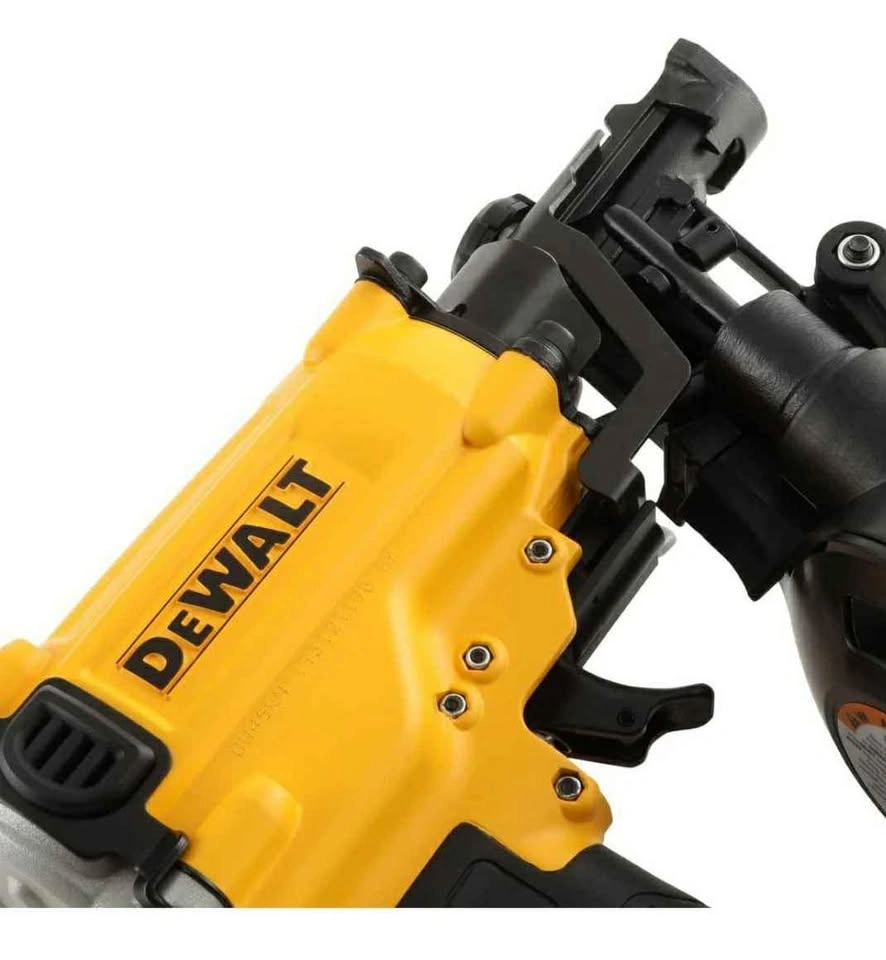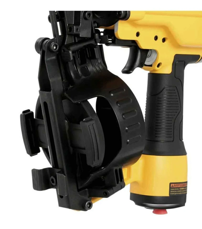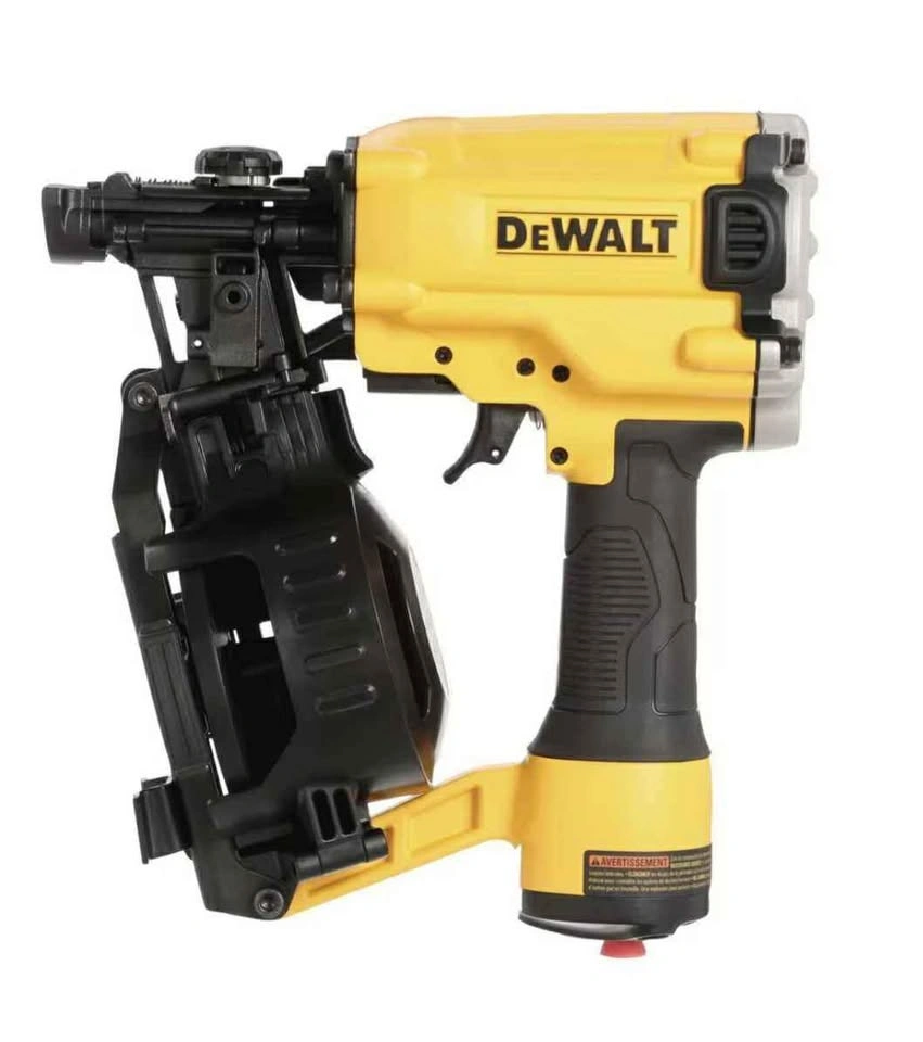 BRAND NEW IN BOX $295 MODEL NUMBER DW45RN 3 AVAILABLE BRAND NEW IN BOX The DEWALT DW45RN Coil Roofing Nailer is ideal for asphalt shingle roofing applications. This nailer increases your roofing productivity by allowing you to shoot 120 nails before reloading for maximum efficiency. Coil collated nails are compact and easy to load. Its ergonomic design is lightweight for easy handling. High speed valve technology drives over 10 nails per second Ergonomic design is lighter than leading competitive coil roofing nailers High life engine, seals and feed system for durability and long life Steel skid plates with rubber inserts protect the tool and help to stop it from sliding Depth adjust wheel with numbered detents helps drive nails to the proper depth into a variety of materials 15-degree roofing nailer