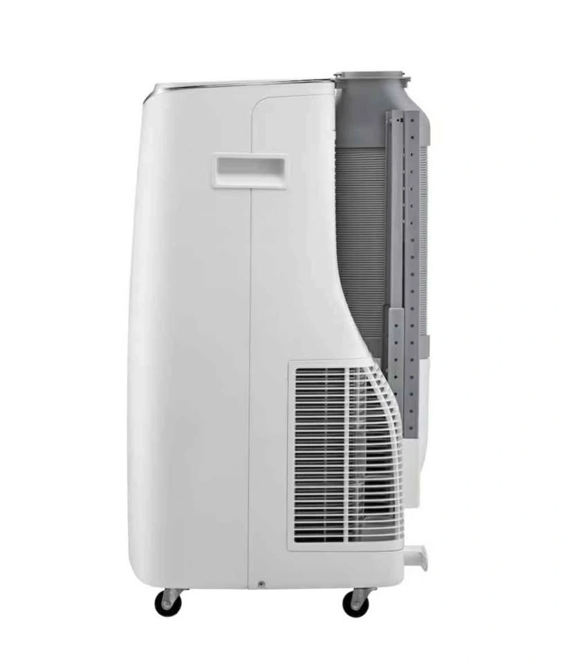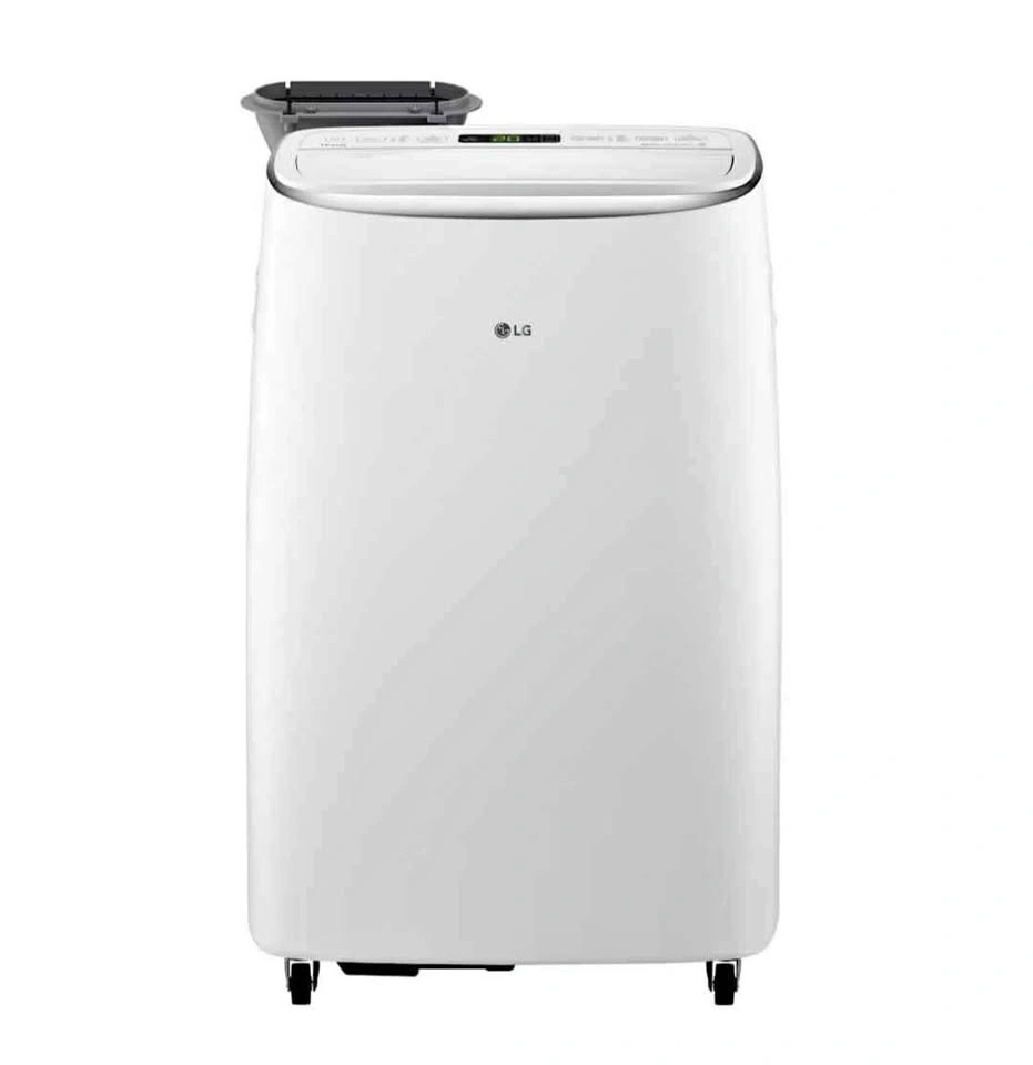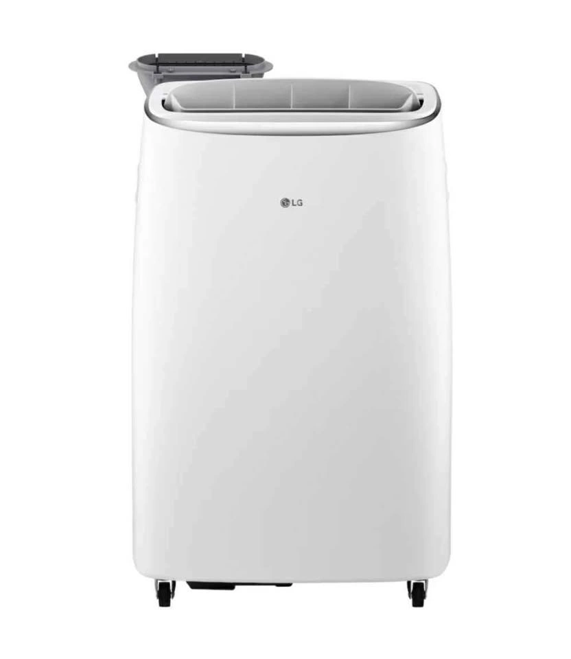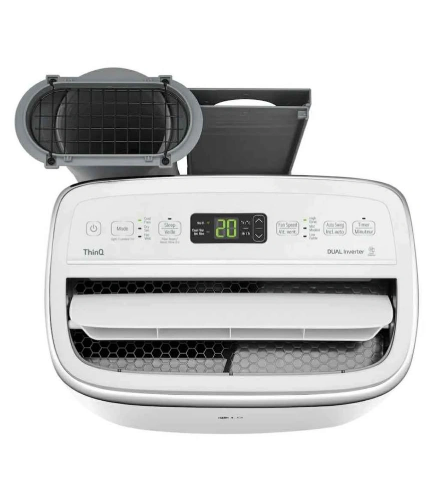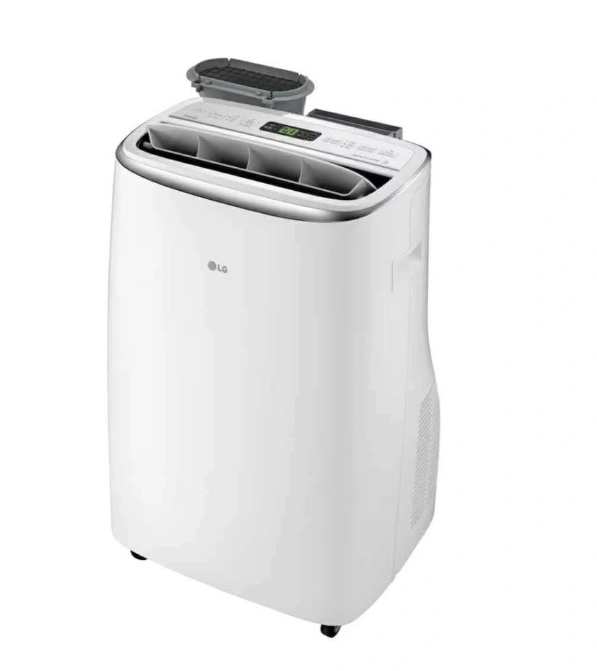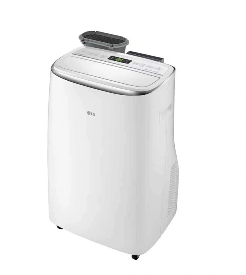 LG Electronics 10,000 BTU DOE/SACC (14,000 BTU ASHRAE) 115V Dual Inverter Smart Wi-Fi Portable Air Conditioner with Remote BRAND NEW IN BOX $500 MODEL NUMBER LP1419IVSM 3 AVAILABLE BRAND NEW IN BOX The LG Electronics 10,000 BTU DOE/SACC (14,000 BTU ASHRAE) Dual Inverter Portable AC with LCD remote features a dehumidification mode that removes up to 3.1 pt. of moisture from the air per hour. This quiet machine (down to 44 dBA) also features an oscillating air vent that automatically circulates cool air evenly to eliminate hot spots. It also features Energy Savings (up to 25%) to help reduce energy costs. Equipped with casters that allow for easy movement to the spaces that need chilling. This portable AC unit also includes a full function LCD remote control for easy temperature, fan speed and timer adjustments from across the room. Providing ample airflow to cool spaces up to 450 sq. ft. Note: the freestanding unit must stay upright for 24 hours before use, must be vented to the outside (window installation kit included with detailed instructions) and cannot be used with extension cords. 10,000 BTU DOE/SACC (14,000 BTU ASHRAE) cooling power provides welcome relief when it's hot outside. Voltage/60 Hz: 115 Dual Inverter Technology Lo-Decibel Operation (down to 44dB) Energy Savings (Up to 25%) Connected, Smart Control with LG SmartThinQ, Alexa, and Google Home 3-speed fan lets you select the right airflow to suit your needs while affording arrange of adjustments to deliver comfort (optional fan-only mode) Equipped with oscillating air vent (auto swing) Air circulates evenly via oscillating vent to avoid hot spots Casters allow easy movement to the room that needs cooling Includes window installation kit with hose (detailed assembly instructions included in owner's manual) 24-hour on/off timer lets you create a cooling schedule without wasting electricity; set it to turn on before you get home or off after you leave Easy-to-use LCD remote control enables adjustments to fan speed, temperature and timer from across the room 4.25 ft. power cord plugs into standard wall outlets (not compatible with extension cords) Removes up to 3.1 pt. of moisture from the air in 1 hour to control humidity Voltage/60 Hz: 115 Window Requirement for Window installation kit: Vertical-sliding windows 58 cm to 153 cm wide; Horizontal-sliding windows from 58 cm to 153 cm high