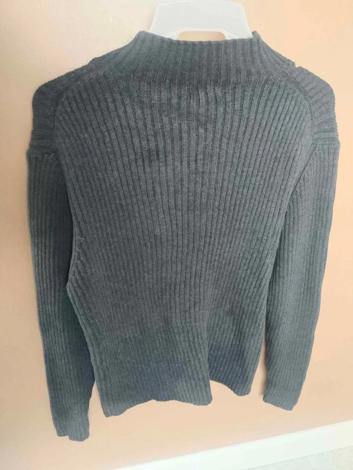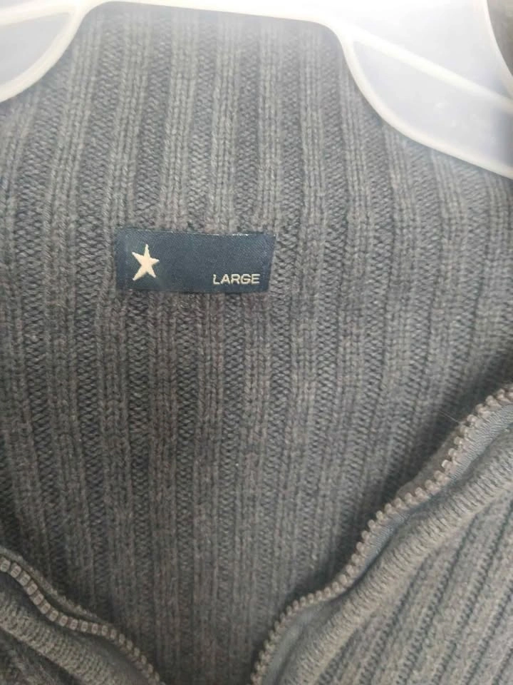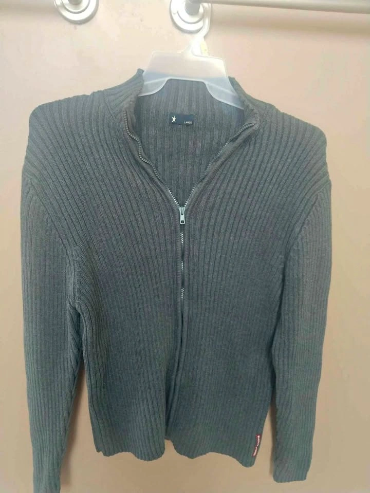 Men's sweater in dark grey color. Size L, has stretch. Has a zipper.