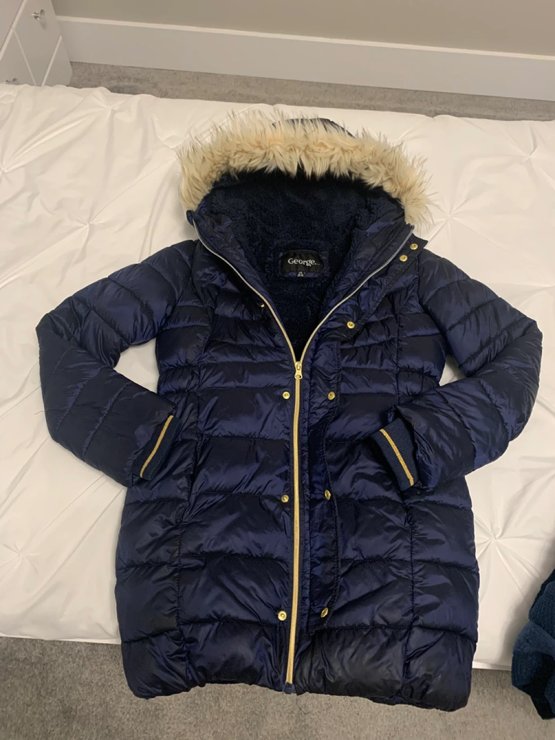 Navy colour. Very warm girl’s coat in good condition. Size 10-12 years