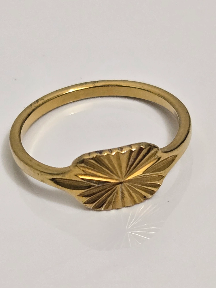 Selling a simple gold-toned ring! It has a unique design on the top and is in great condition. Perfect for adding a touch of elegance to any outfit!