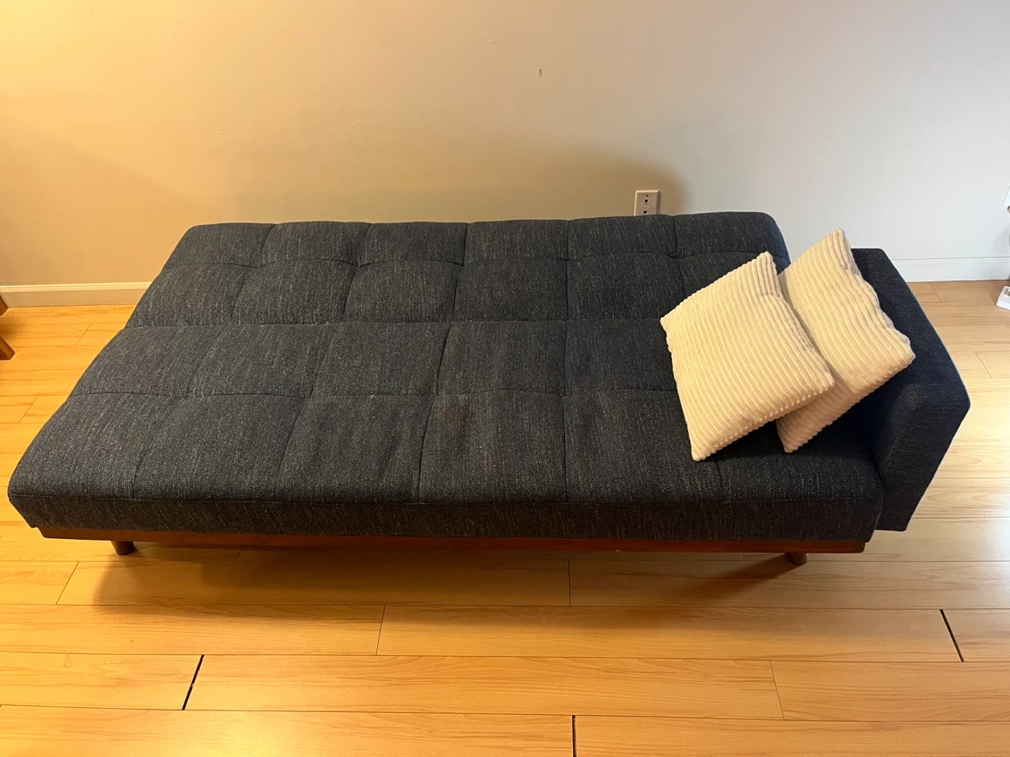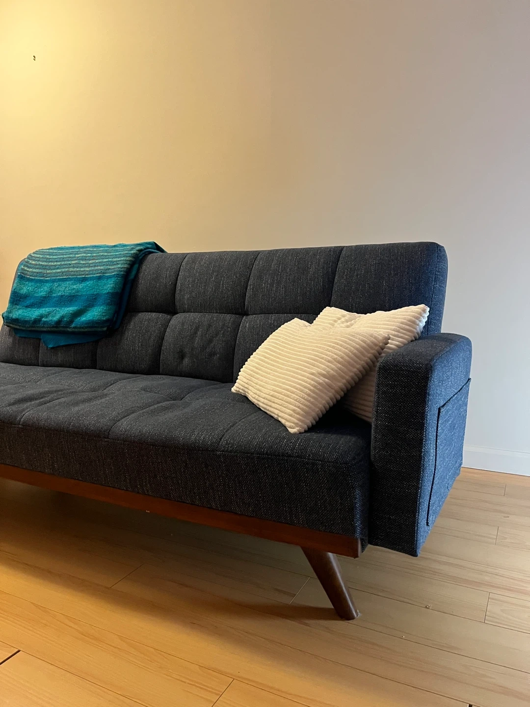 Free with pick up! comfy futon sofa bed. It's in great shape and would be perfect for a living room or guest room. Good condition. The one arm falls off - easy fix. Im moving and getting rid of stuff. Pil