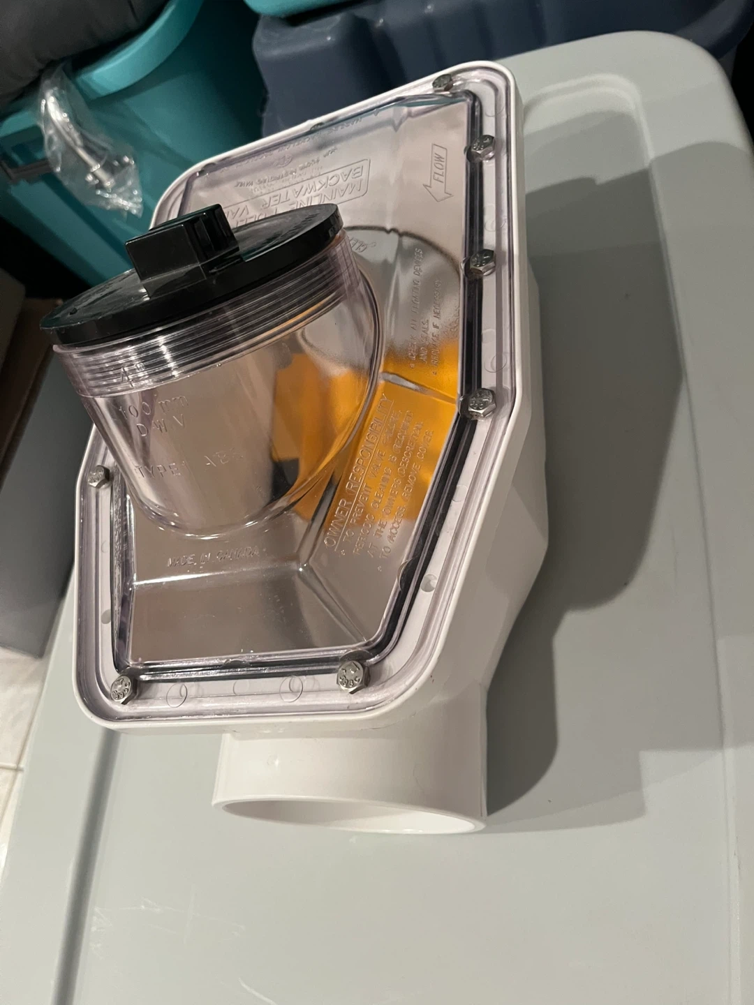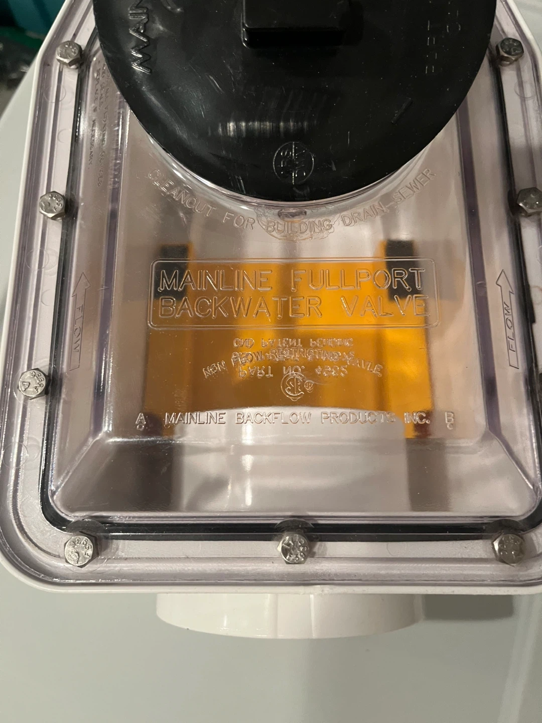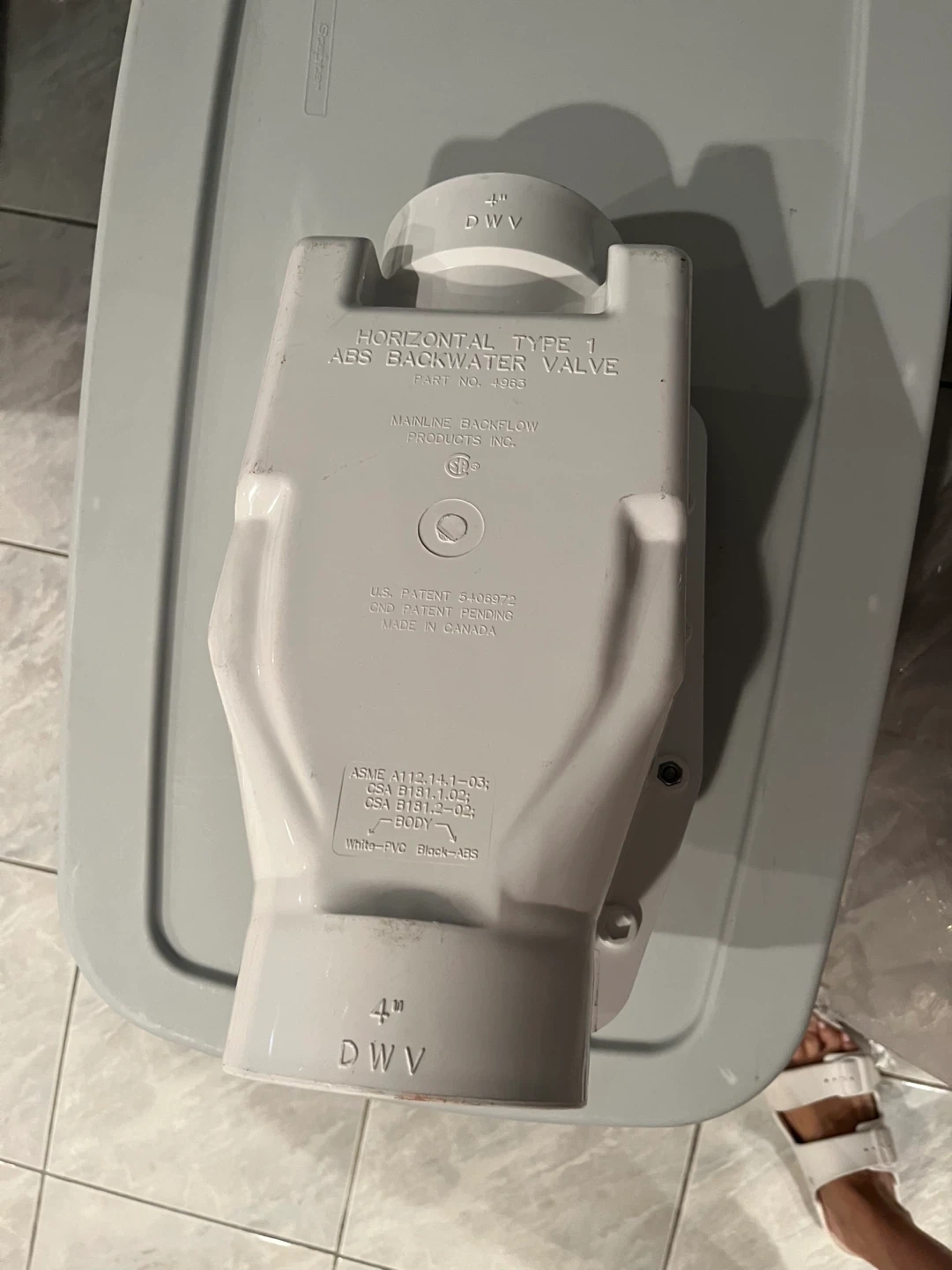 Selling a Mainline Backflow Horizontal Type 1 ABS Backwater Valve. It's a 4" DWV valve. Please see photos for details