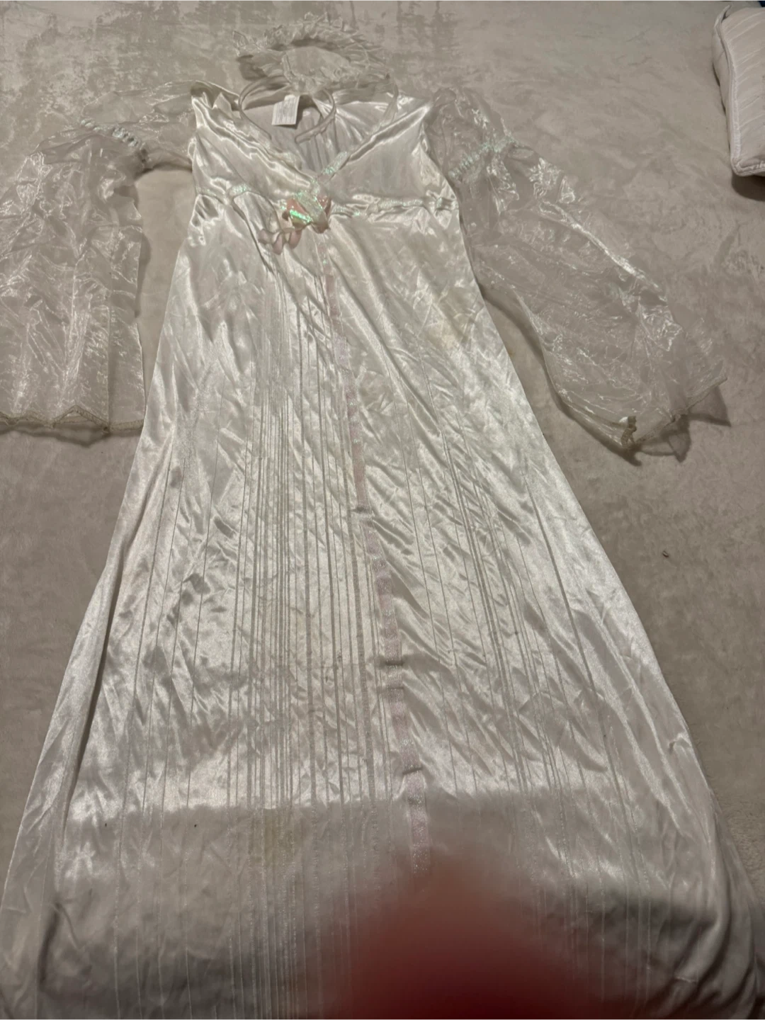 Selling a white angel costume! It's in great condition and perfect for Halloween or dress-up. The costume features flowing sleeves and a delicate design. Would be great for a costume party!