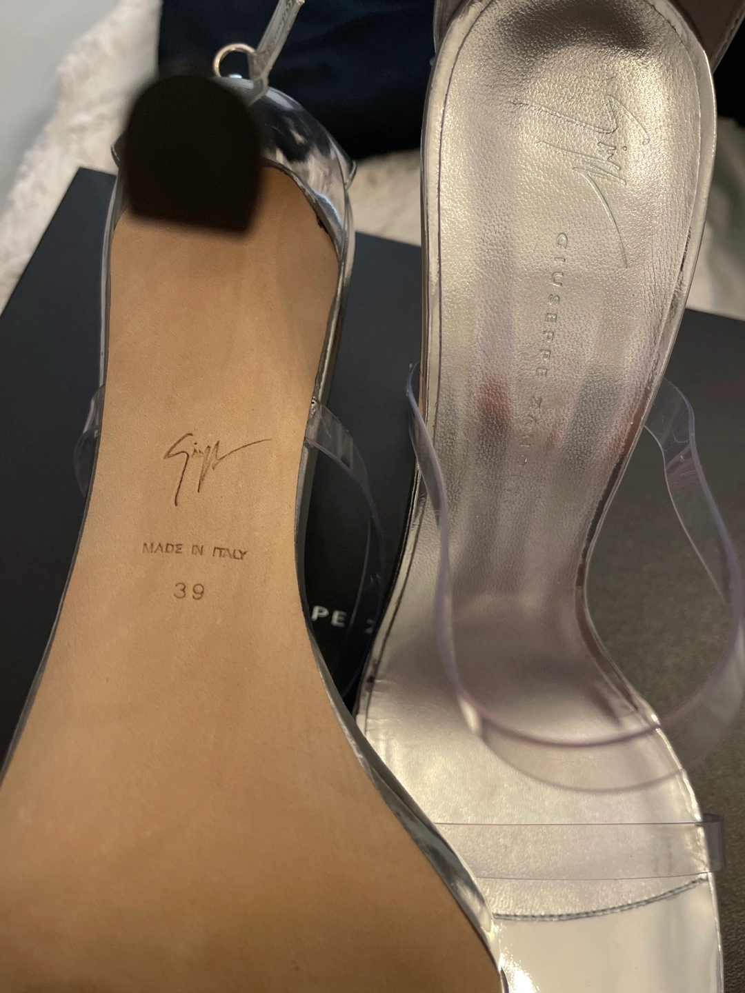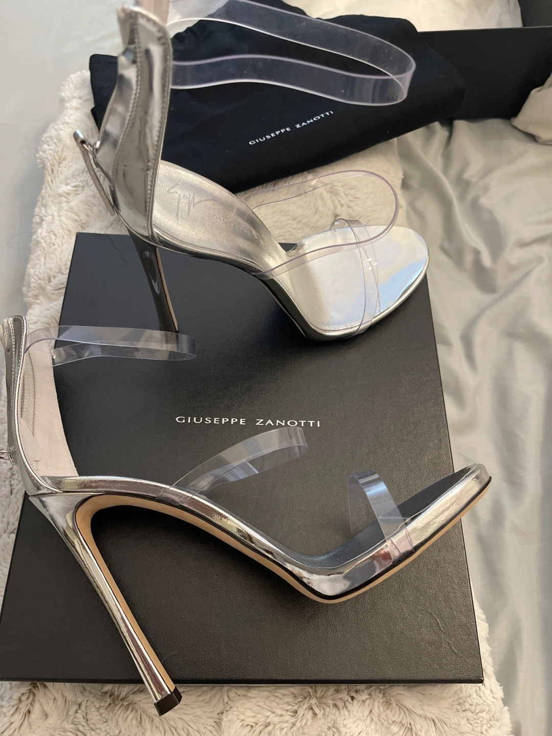 Selling a pair of Giuseppe Zanotti silver heels in size 39! These stylish heels are perfect for a night out or a special occasion. They come with the original box and dust bag. Brand new.