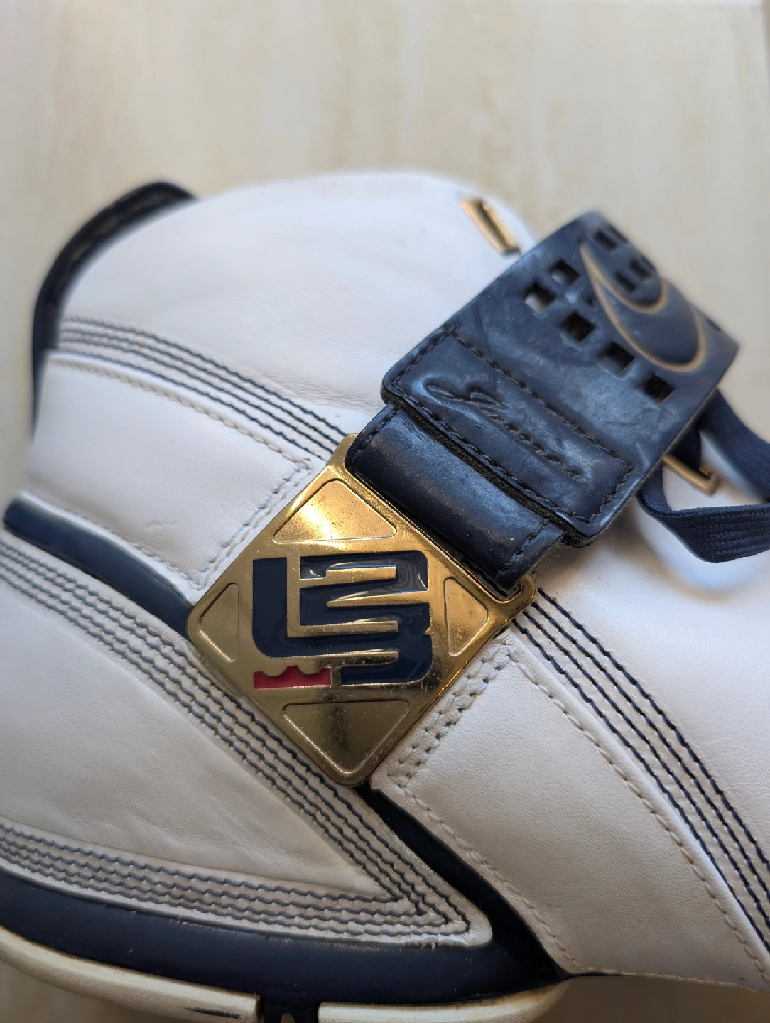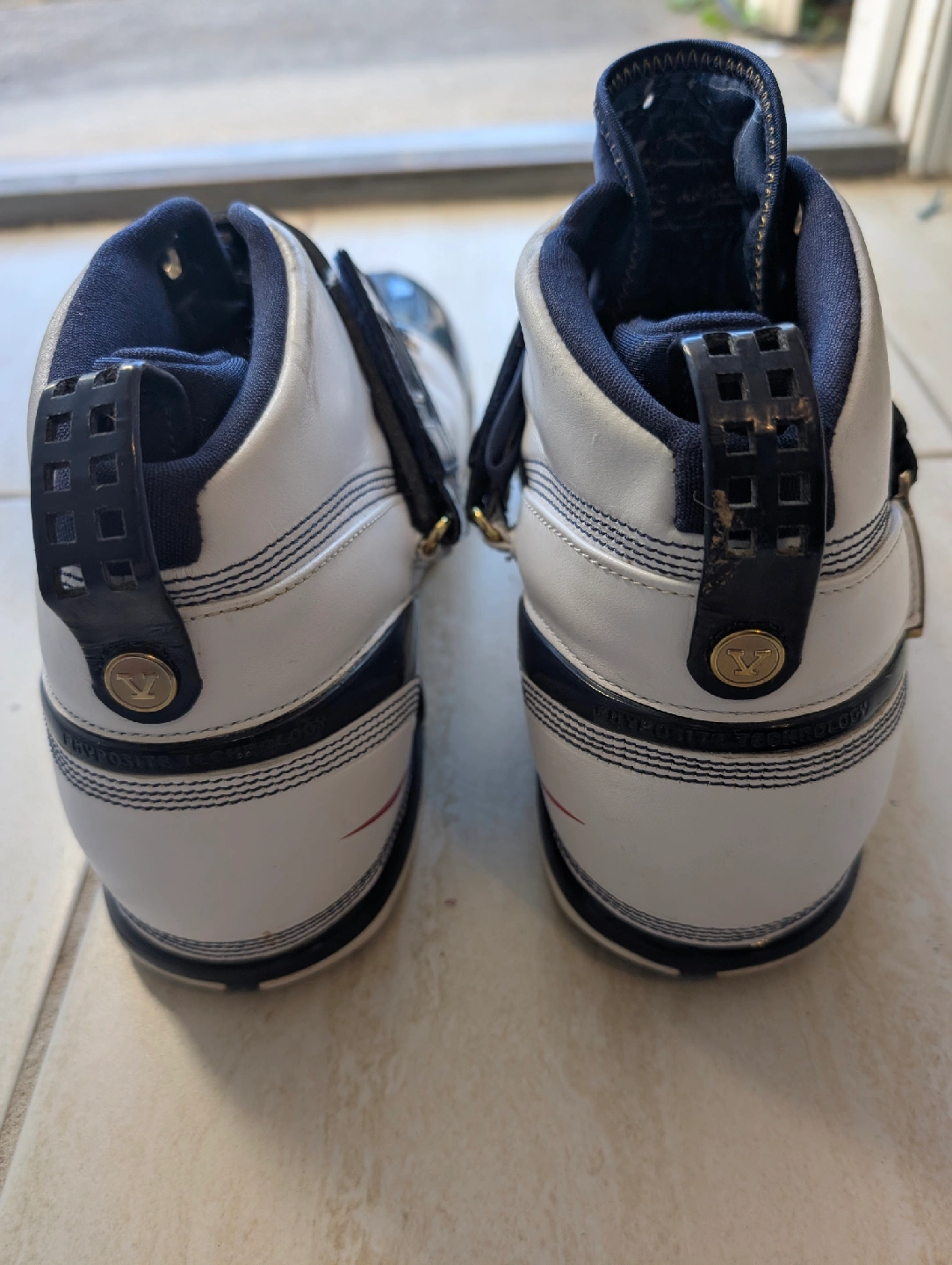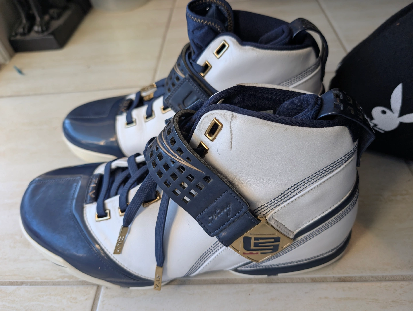 Selling a pair of Nike Air Zoom Lebron VI (6) shoes. They are a size US 13 and feature a navy blue and white colourway. Great for basketball or casual wear!