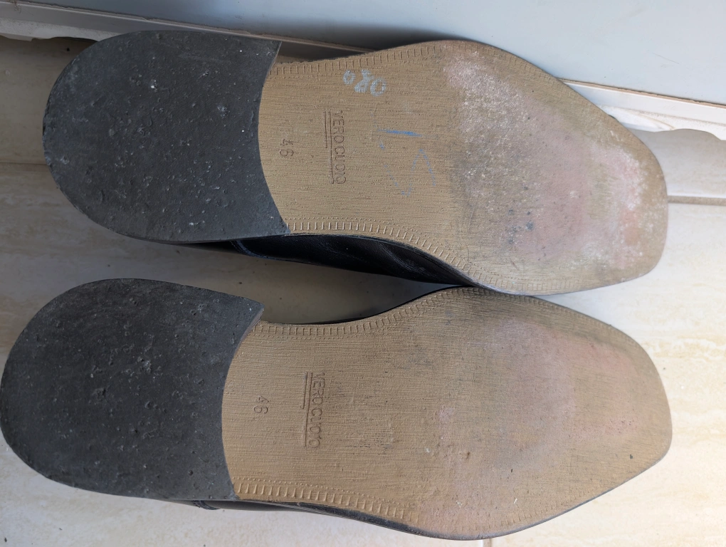 Selling a pair of black leather dress boots. They are in used condition, with some wear on the soles, but still have lots of life left. The size is 46.