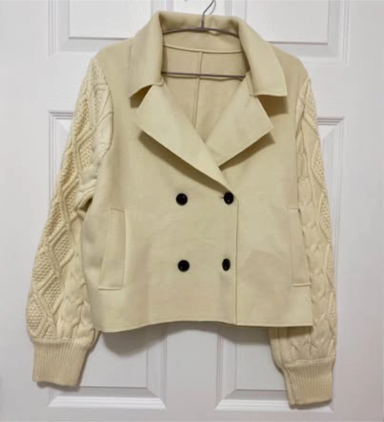 100% New Korean Women Creamy Knit Sleeve Double Breasted Jacket