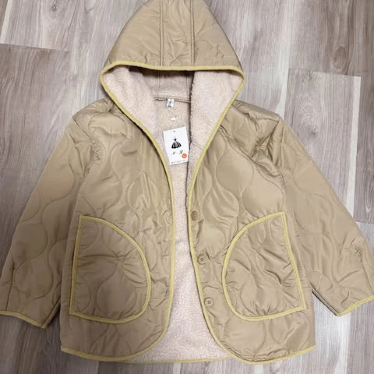 100% New Cozy Women Beige Quilted Hooded Jacket