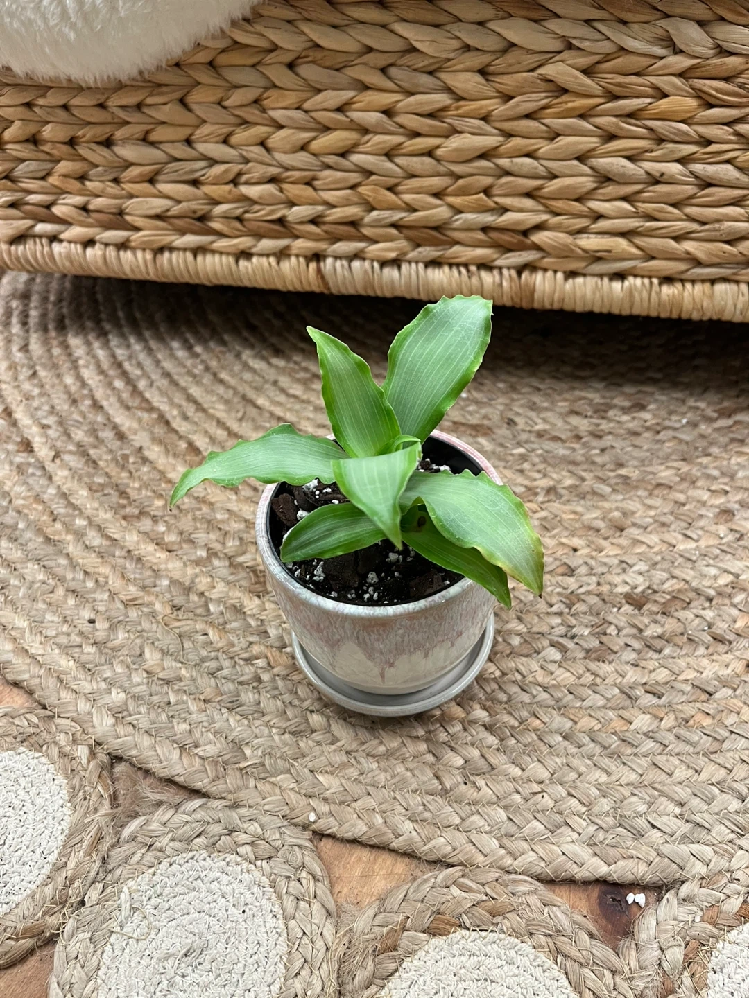 Dual toned tradescantia silver in a 3.5” nursery pot that comes with the light pink and cream ceramic cover pot. Very easy care plant Pick up at The Plant Witch in Erin Ridge, St.Albert Check out my other listings or go to my website theplantwitch.ca to view all my listings for different potted plant varieties, suncatchers, propagation jars, decorative pot stakes and more! 🪴🌞