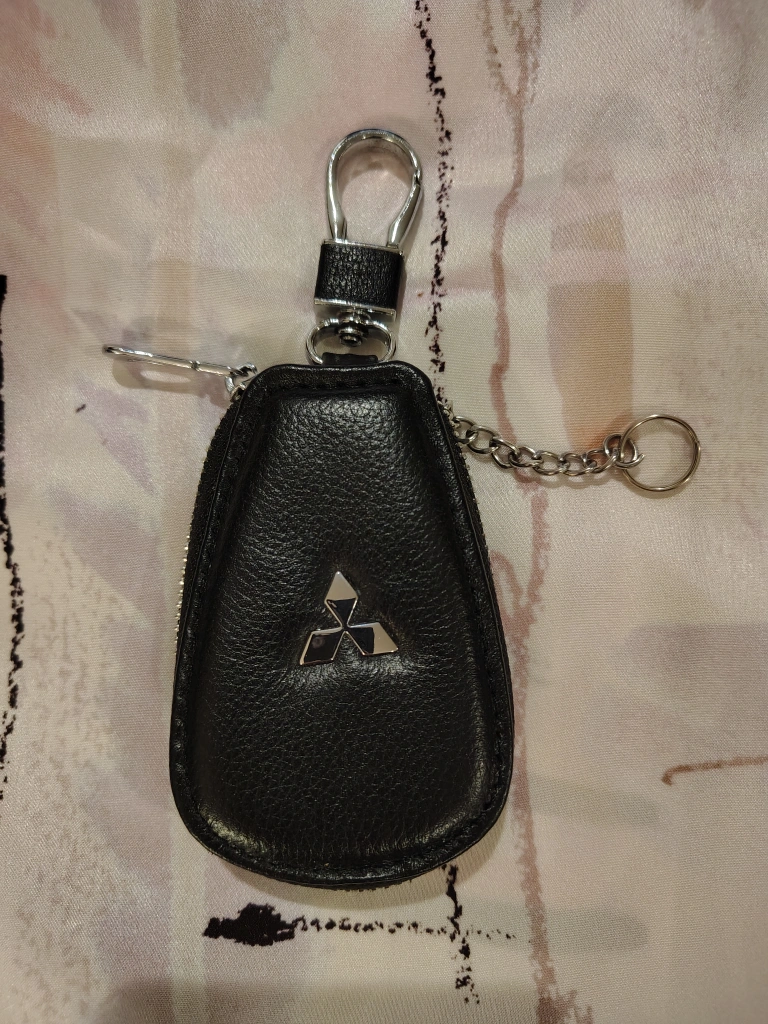 Keep your keys safe and stylish with this Mitsubishi leather key fob case! It's in great condition and features a sleek design with the Mitsubishi logo. Perfect for any Mitsubishi owner adding another level to their car