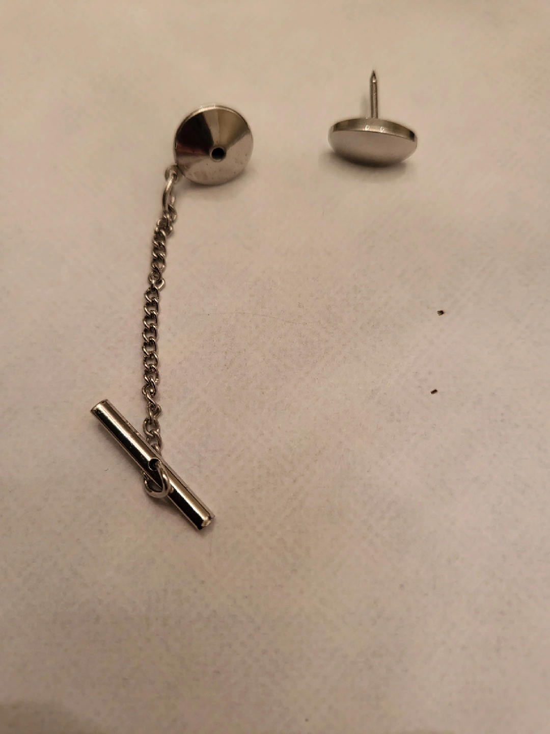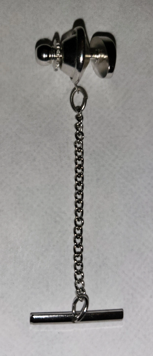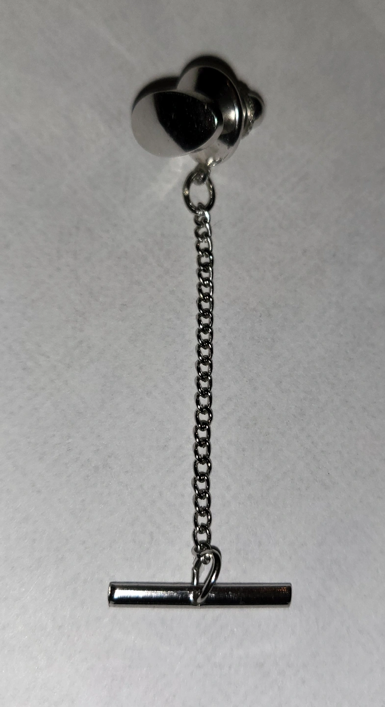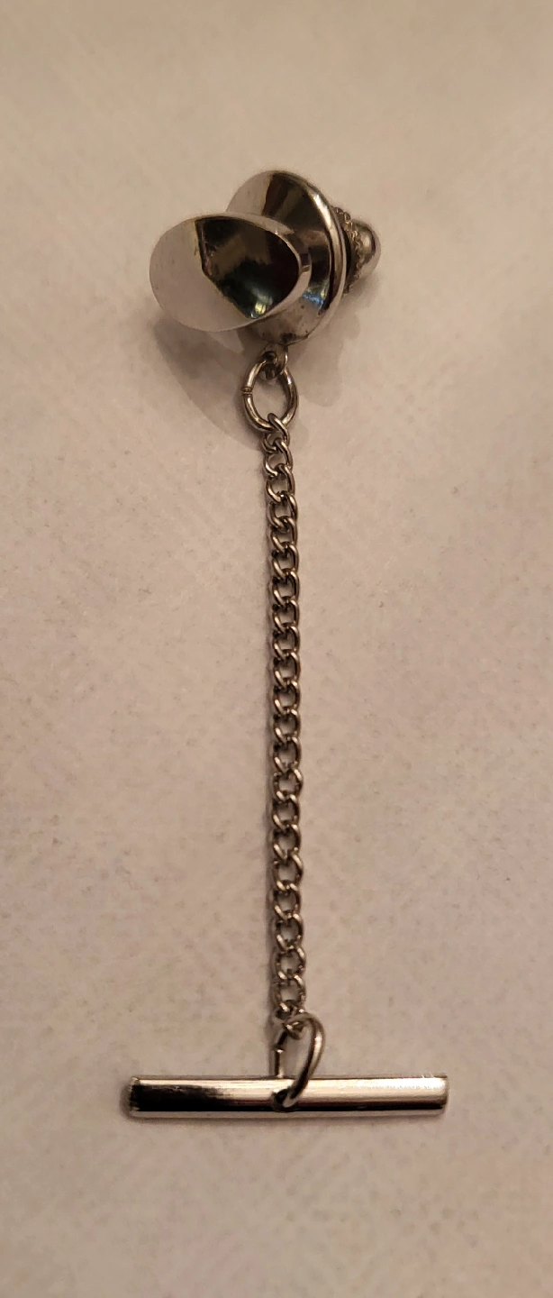Vintage Tie Tack Lapel Pin from the 60s. It is silver color with an Oval ball and a chain tie bar. $15