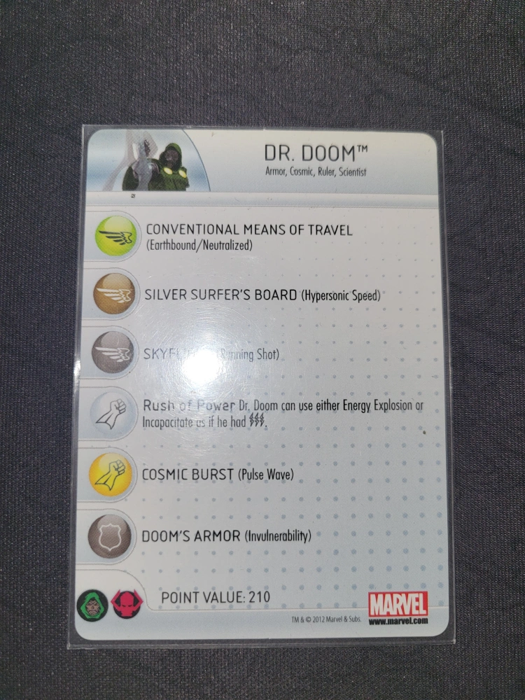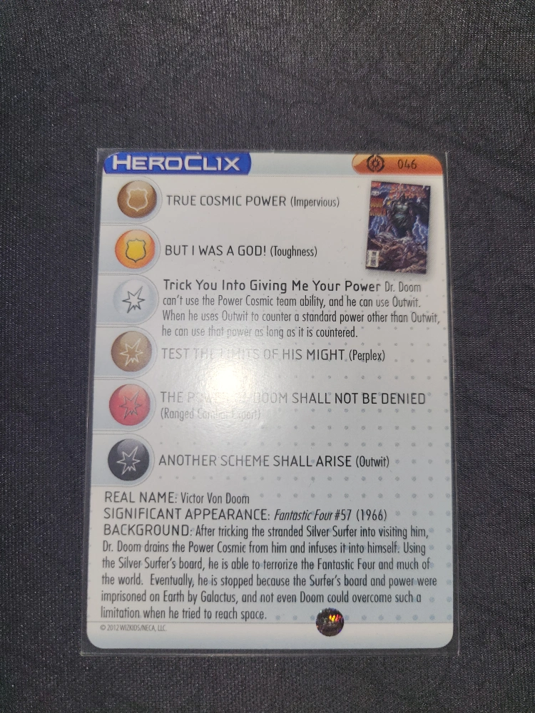 2012 Galatic Guardians Heroclix Set: Dr Doom #046 (Armor, Cosmic, Ruler, Scientist) Card is sleeved.