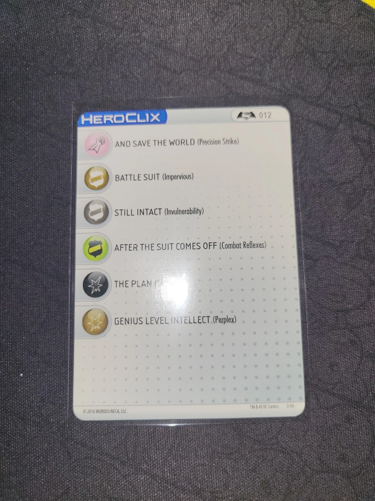 2016 Batman Vs Superman Heroclix Set: Batman #012 (Armor, Gotham City, Justice League) Card Is sleeved.