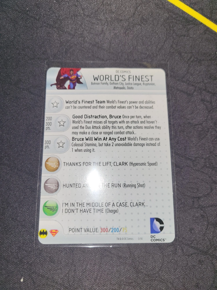2016 World Finest Heroclix Set: Worlds Finest #060 (Batman Family, Gotham City, Justice League, Kryptonian, Metropolis, Trinity) Card is sleeved