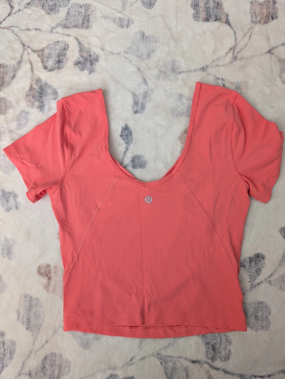 Selling a coral Lululemon t-shirt in excellent condition! Worn only a few times. Size 4. Perfect for workouts or casual wear! From a smoke free home.