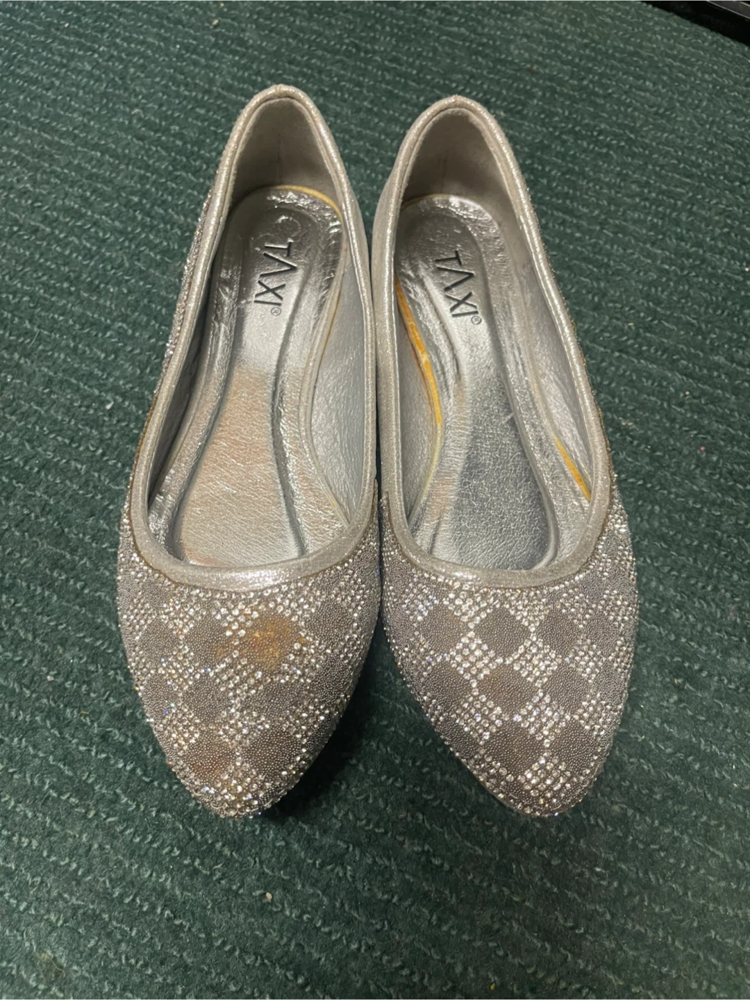Selling a pair of Taxi silver sparkly flats in size 37 They have some signs of wear, as seen in the photos, but still have lots of life left in them! Perfect for adding a bit of sparkle to your outfit