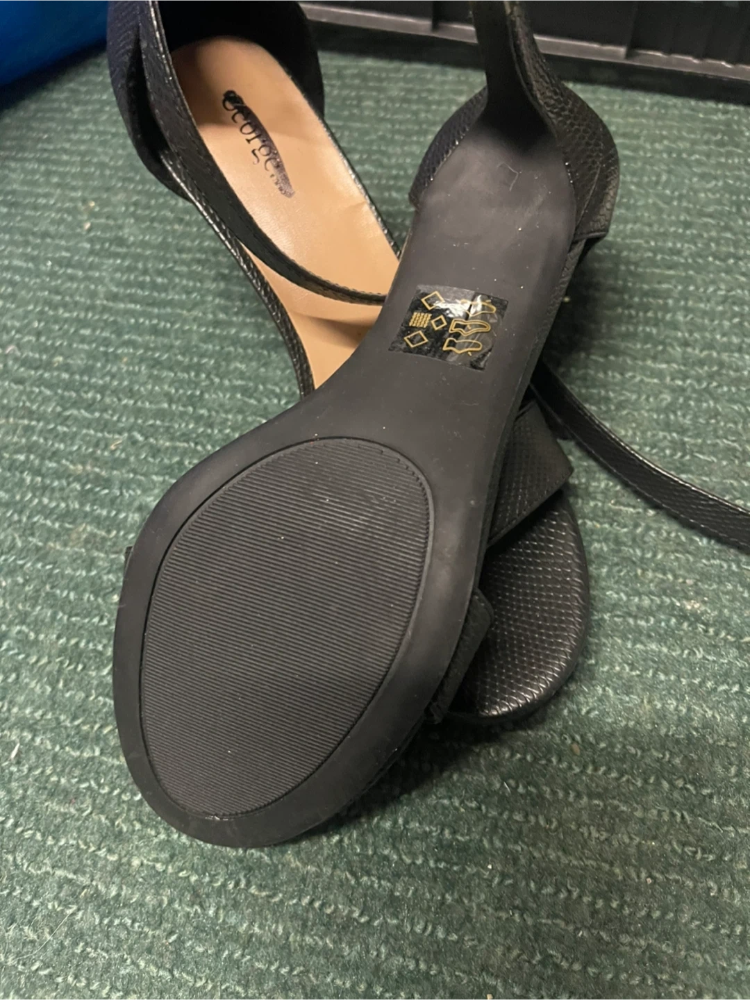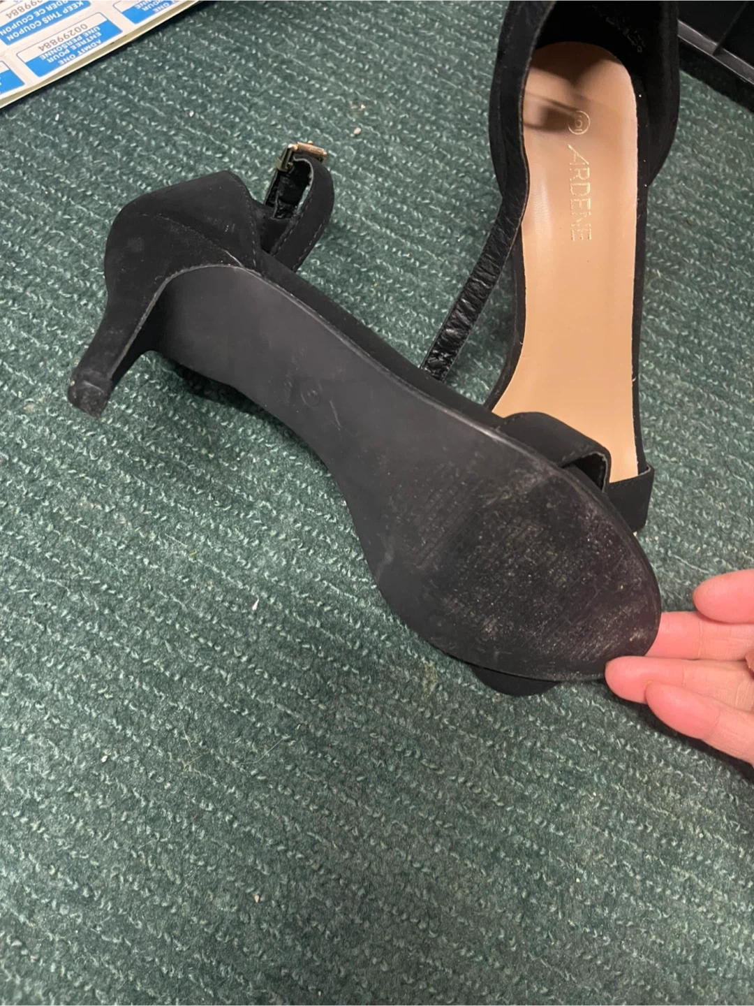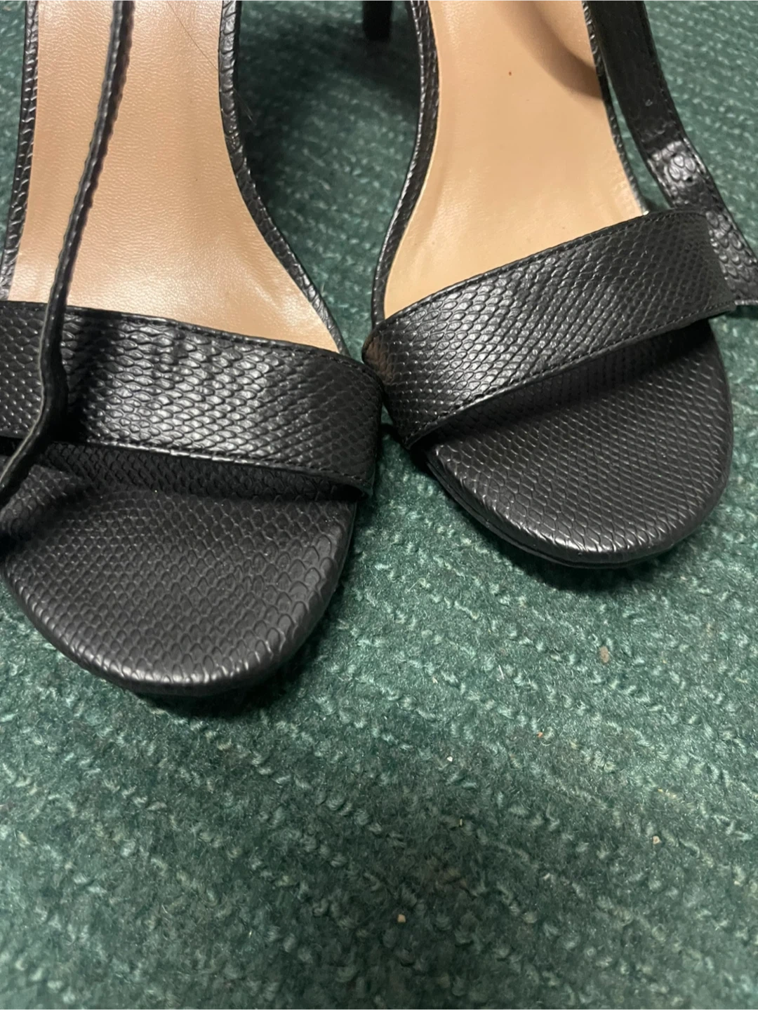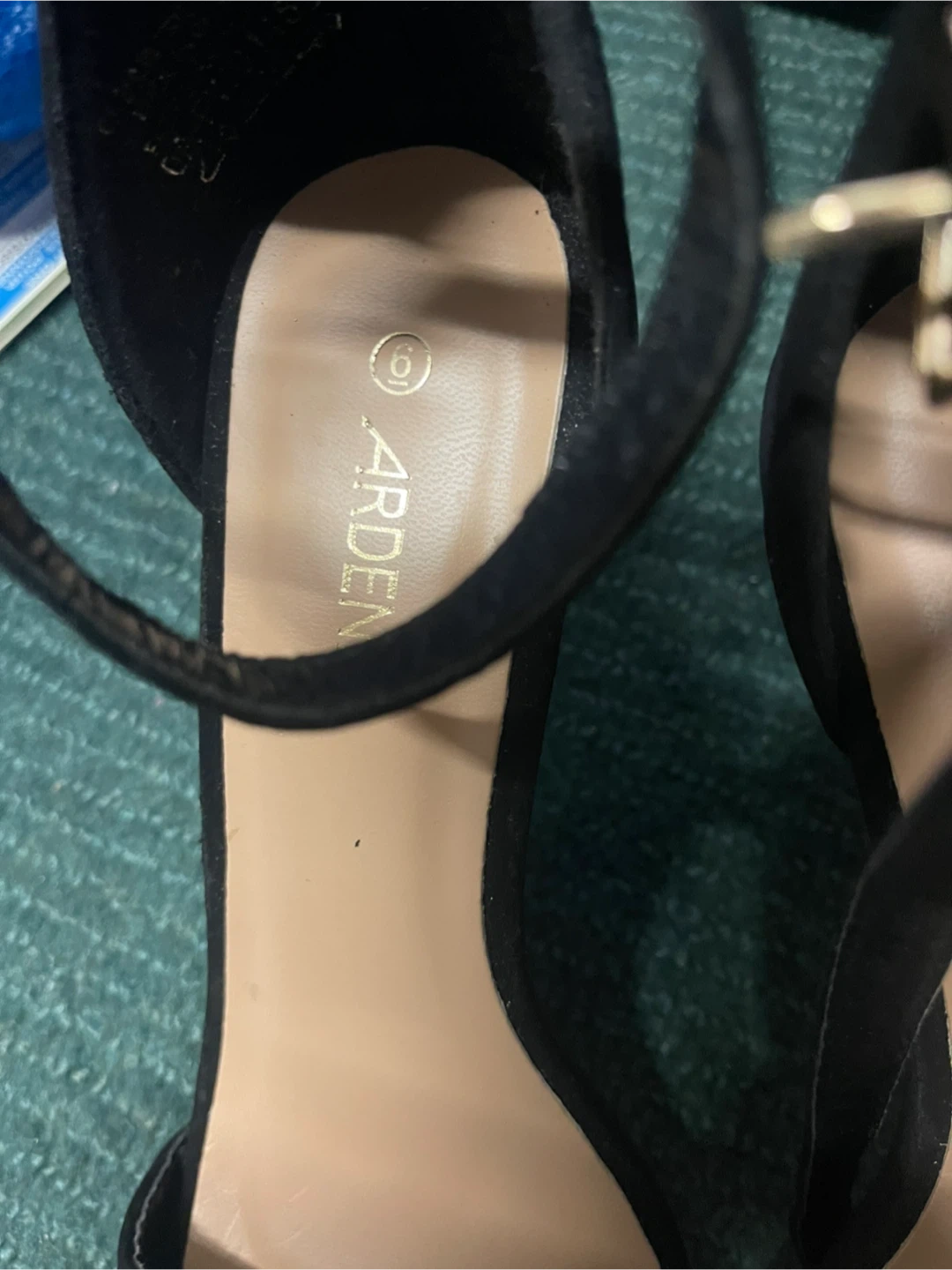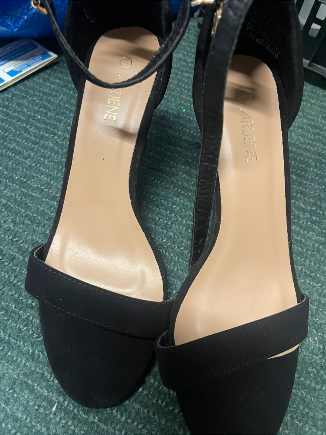 Selling a pair of Ardene black heels in size 6. They have a stylish design, perfect for dressing up any outfit! They're in great condition and ready for a new home