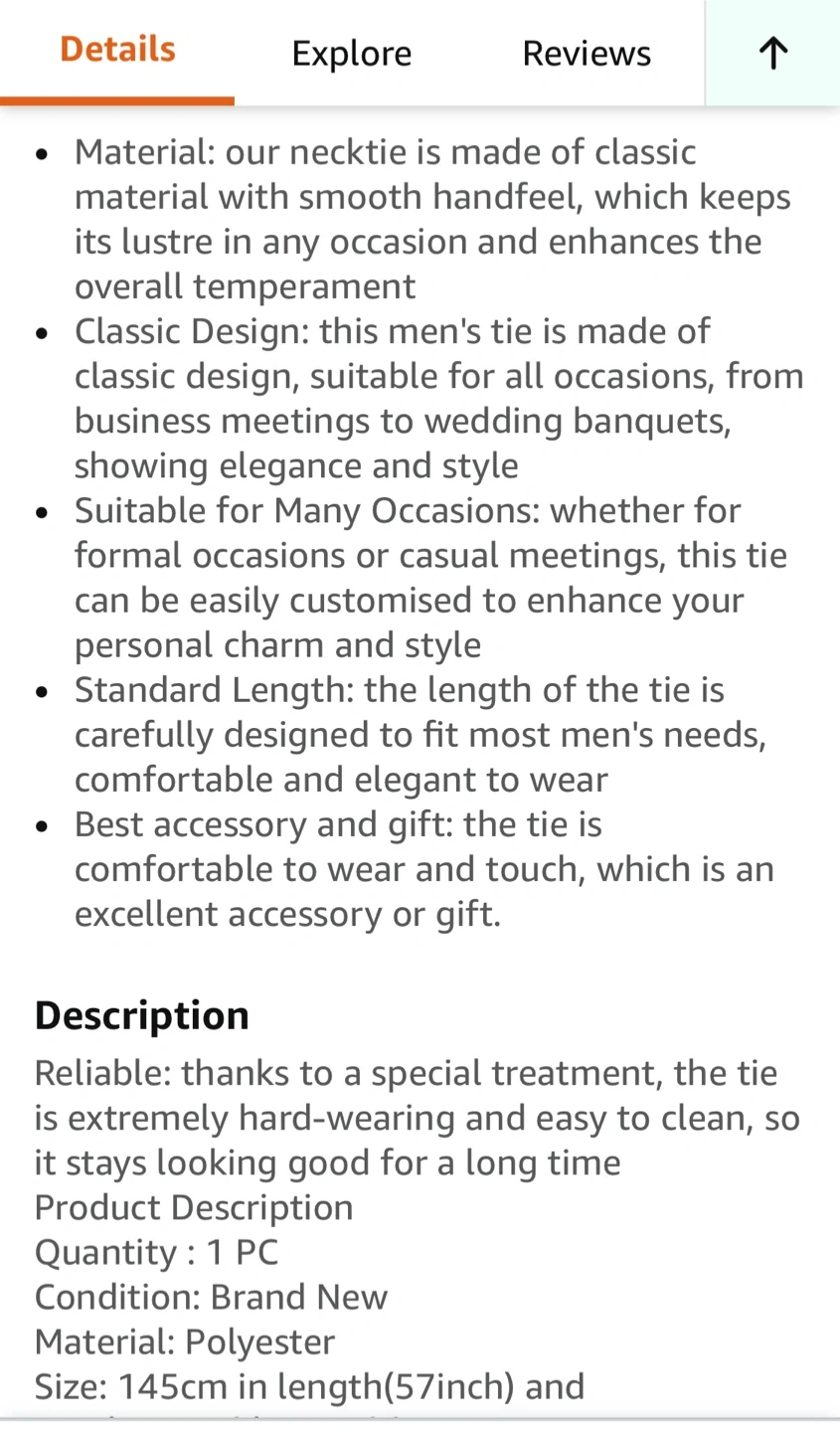 I'm selling a brand new navy blue men's tie! It's made of polyester and is 145cm (57 inches) in length. The material is designed to keep its lustre and enhance your overall temperament. It's suitable for many occasions, from formal meetings to casual events. A great accessory or gift!