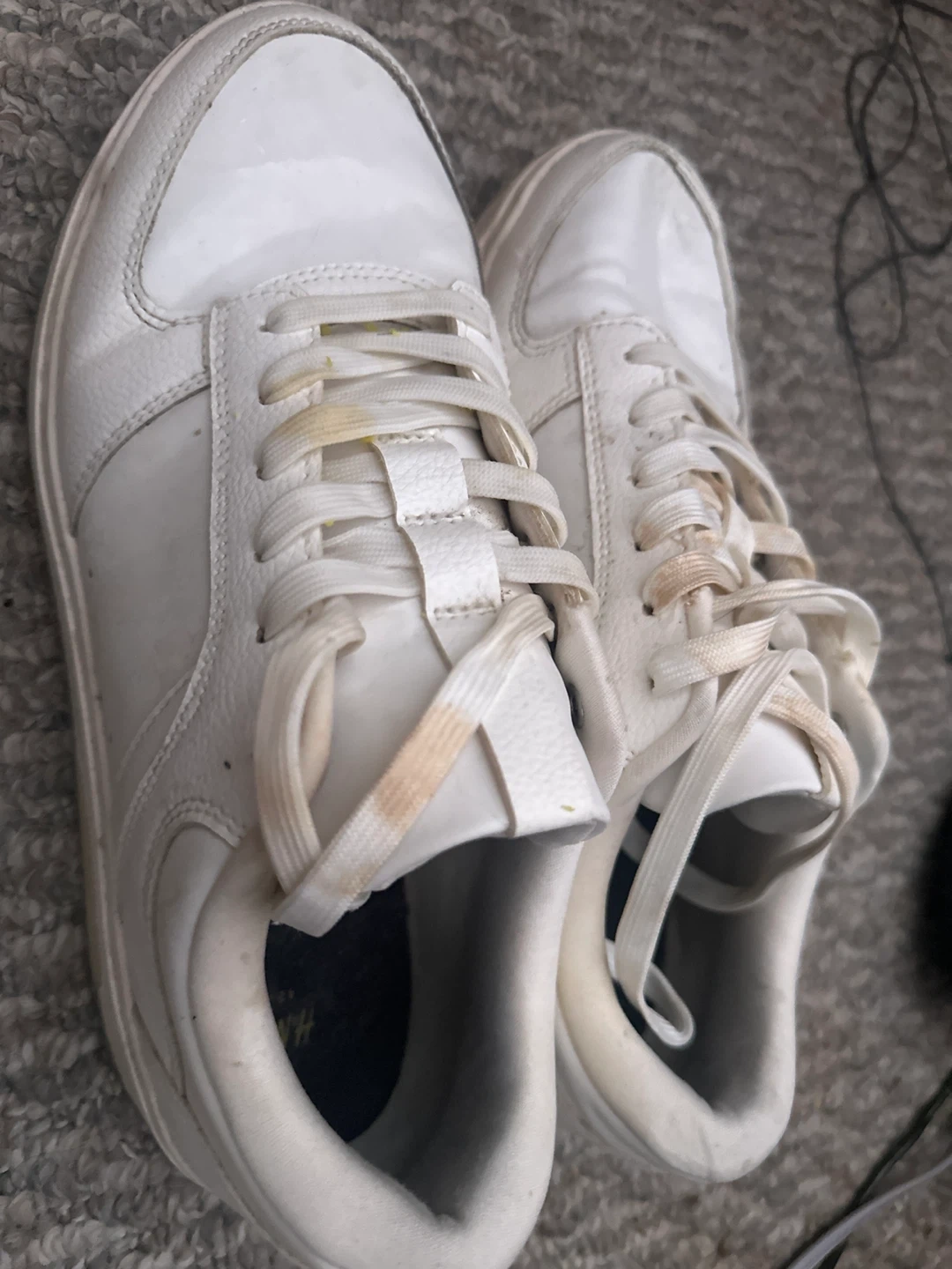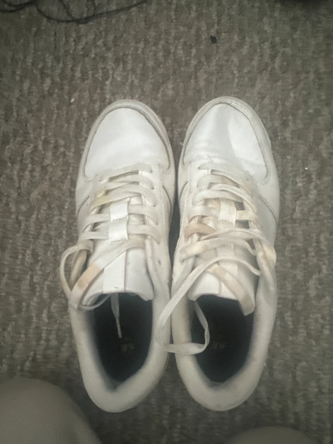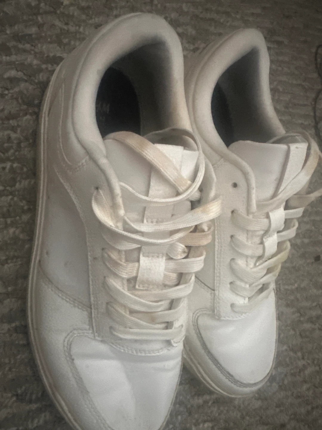 Selling a pair of white athletic shoes. They show signs of wear, as you can see in the photos, but still have lots of life left in them! Great for everyday wear or workouts.