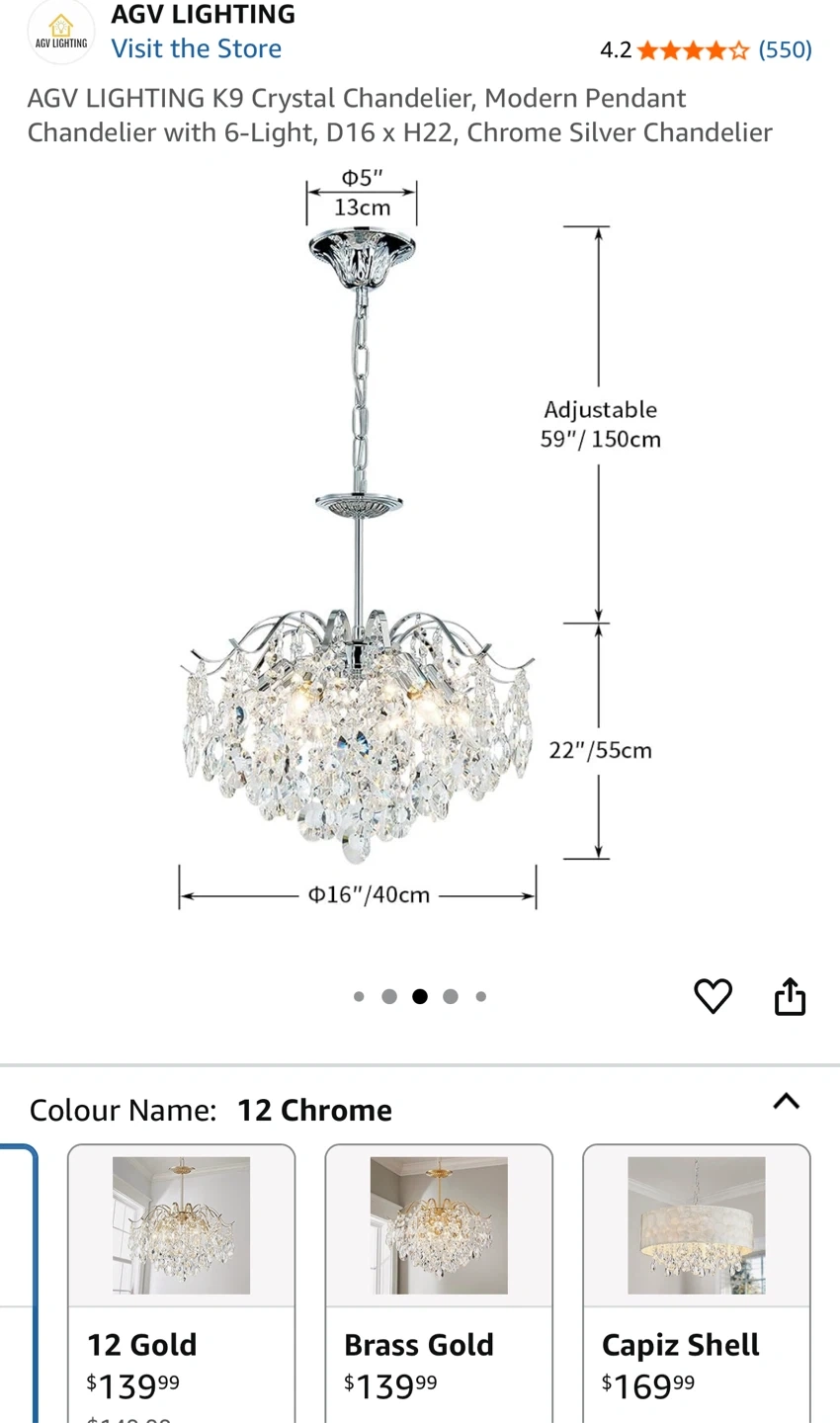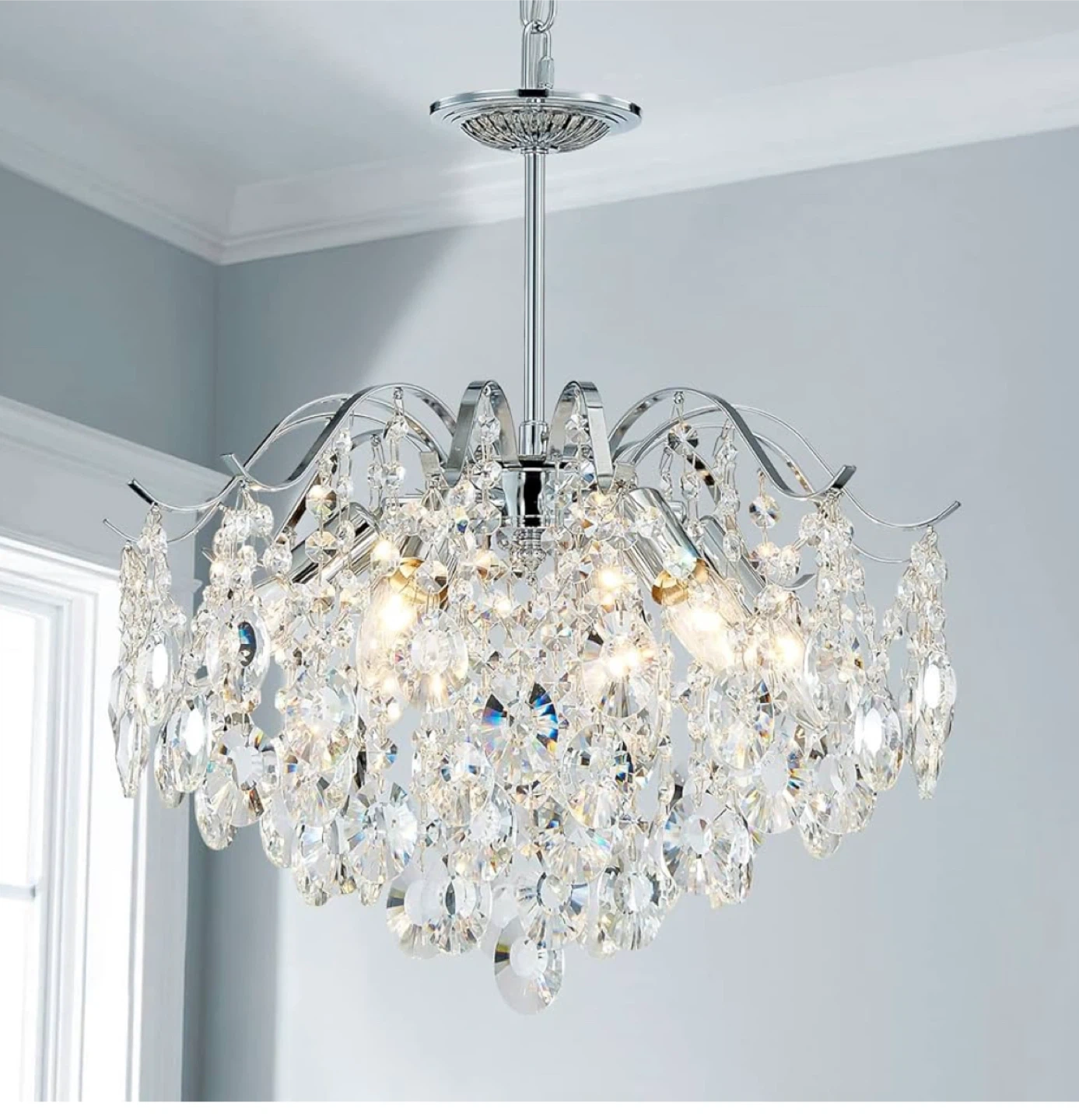 Add a touch of elegance to your home with this stunning AGV Lighting K9 Crystal Chandelier! This modern pendant chandelier features 6 lights and a beautiful chrome silver finish. It measures 16 inches in diameter and 22 inches in height. Originally bought for $139.99 Still in box. Never opened