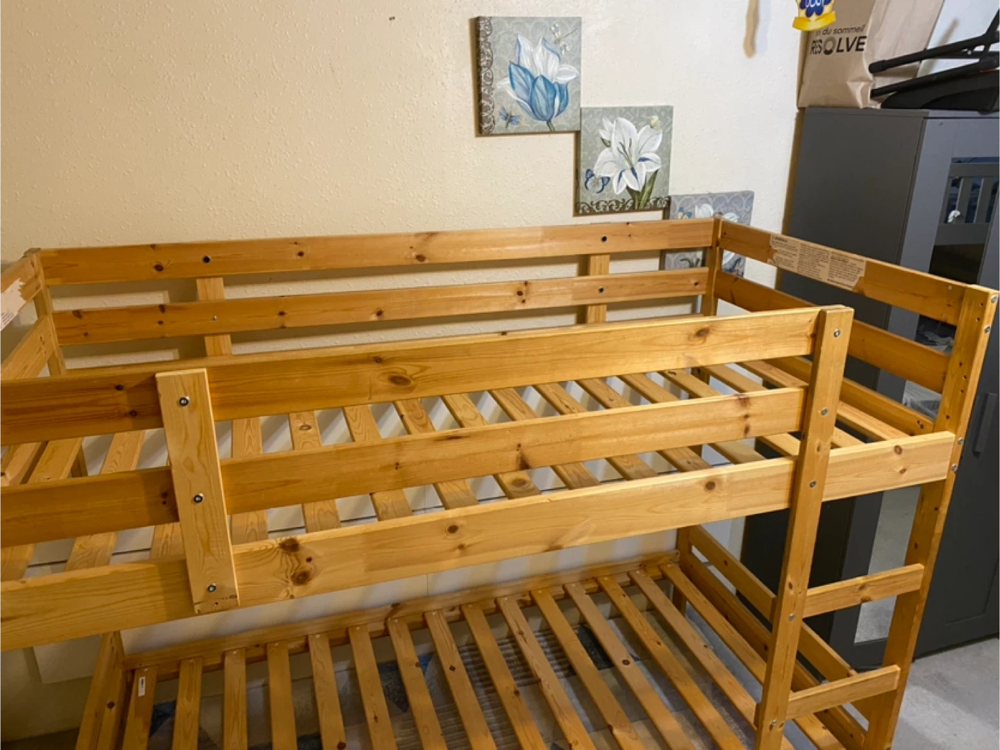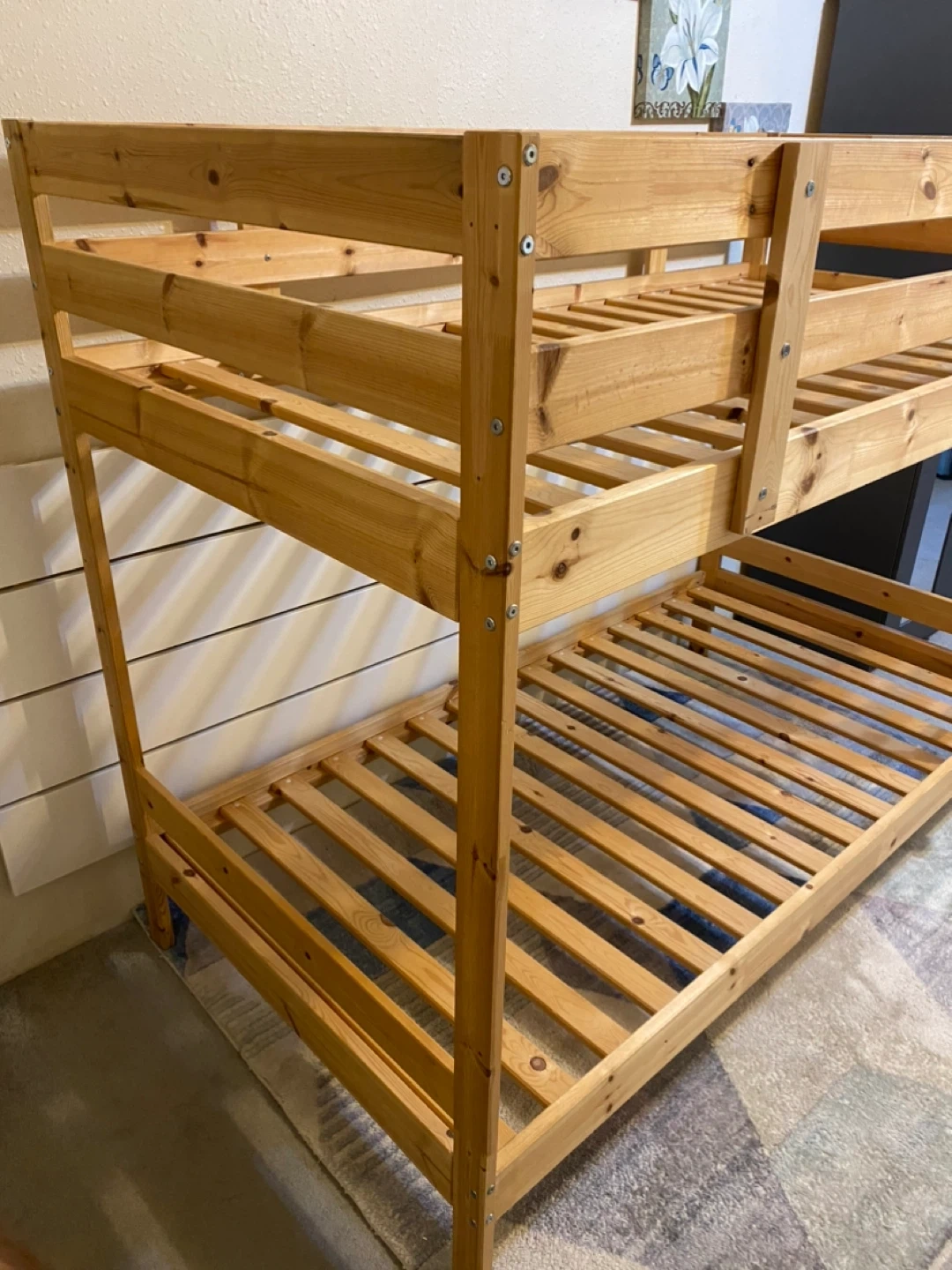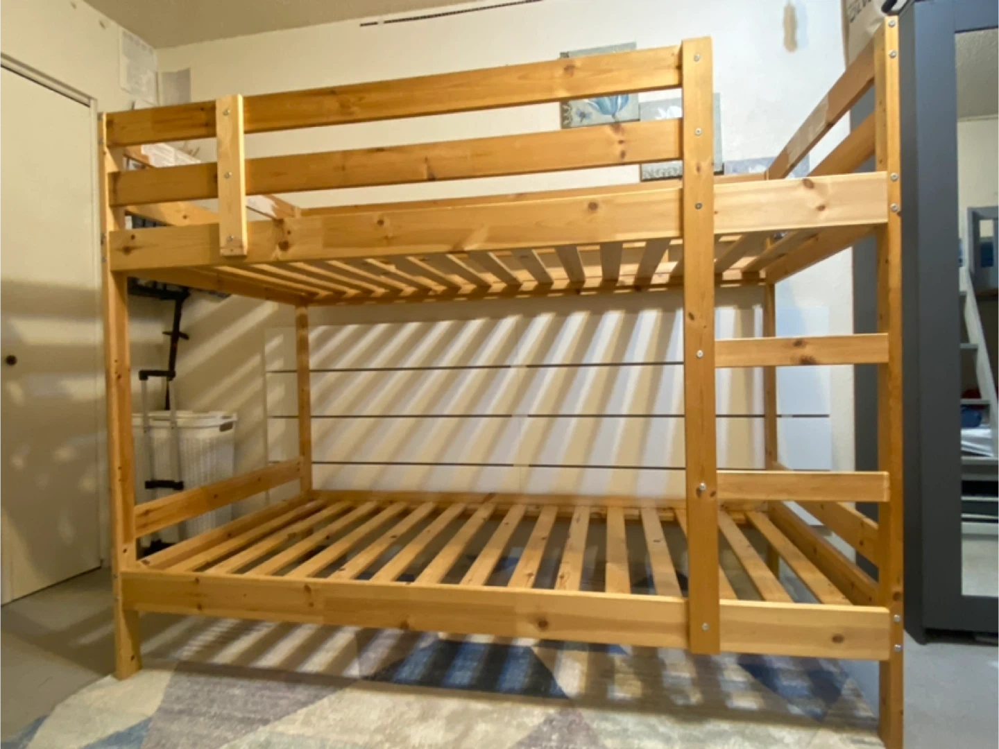 bunk bed in great shape very strong and sturdy and ready for a new home! Comes with all parts hardware plus guide. Pick up near surrey centre station or can deliver and assemble for extra .smoke and pet free (partially disassembled).