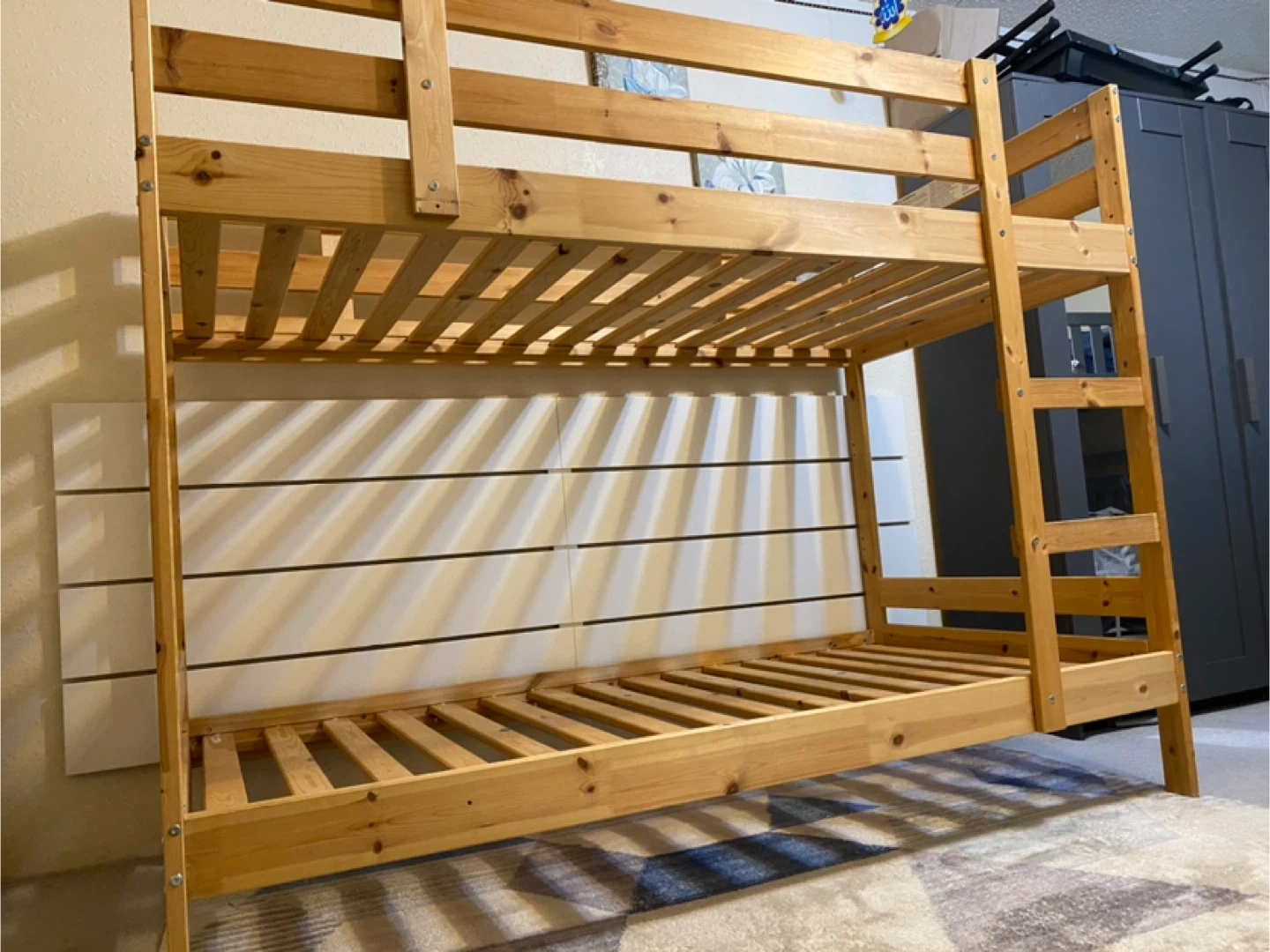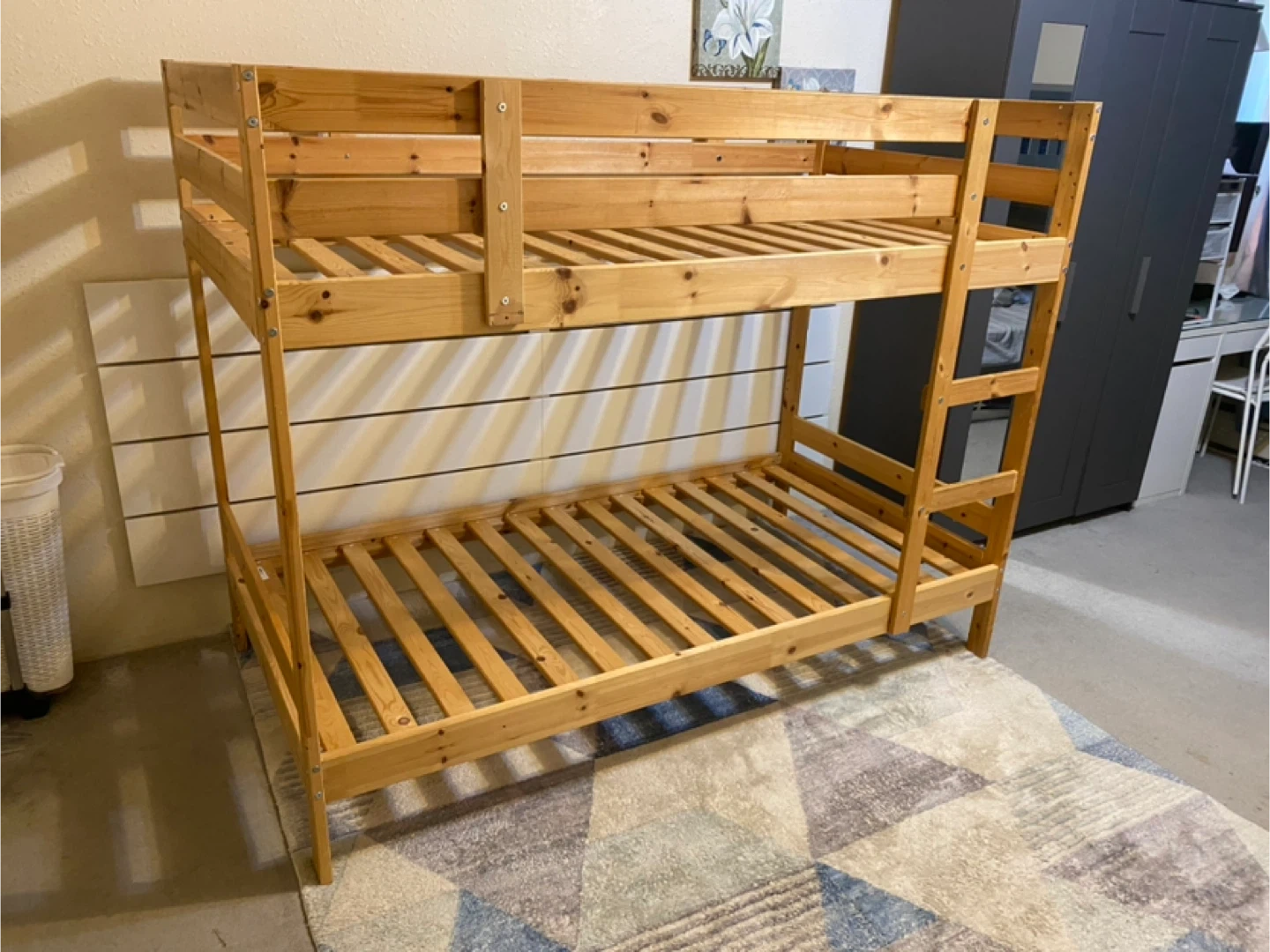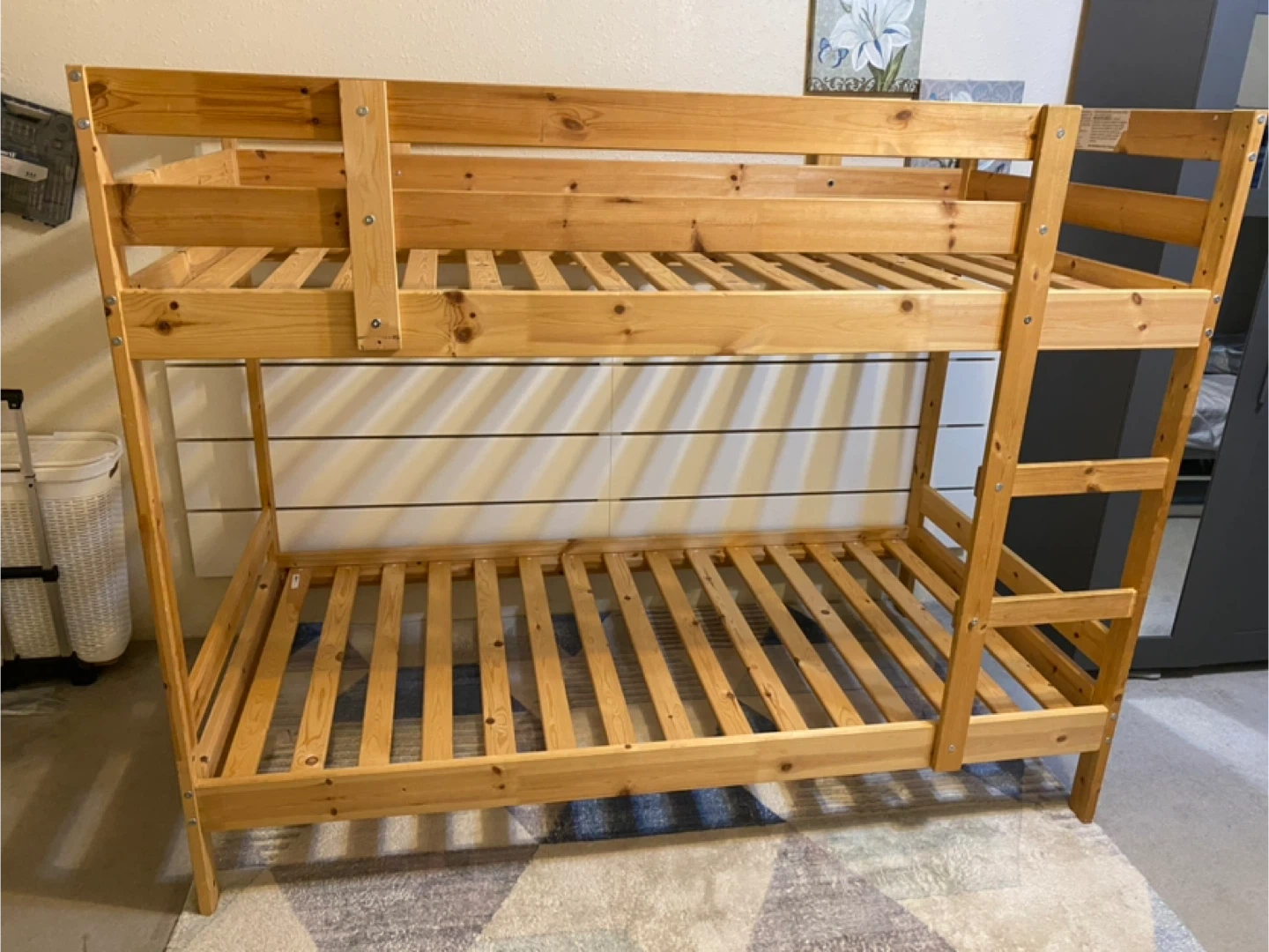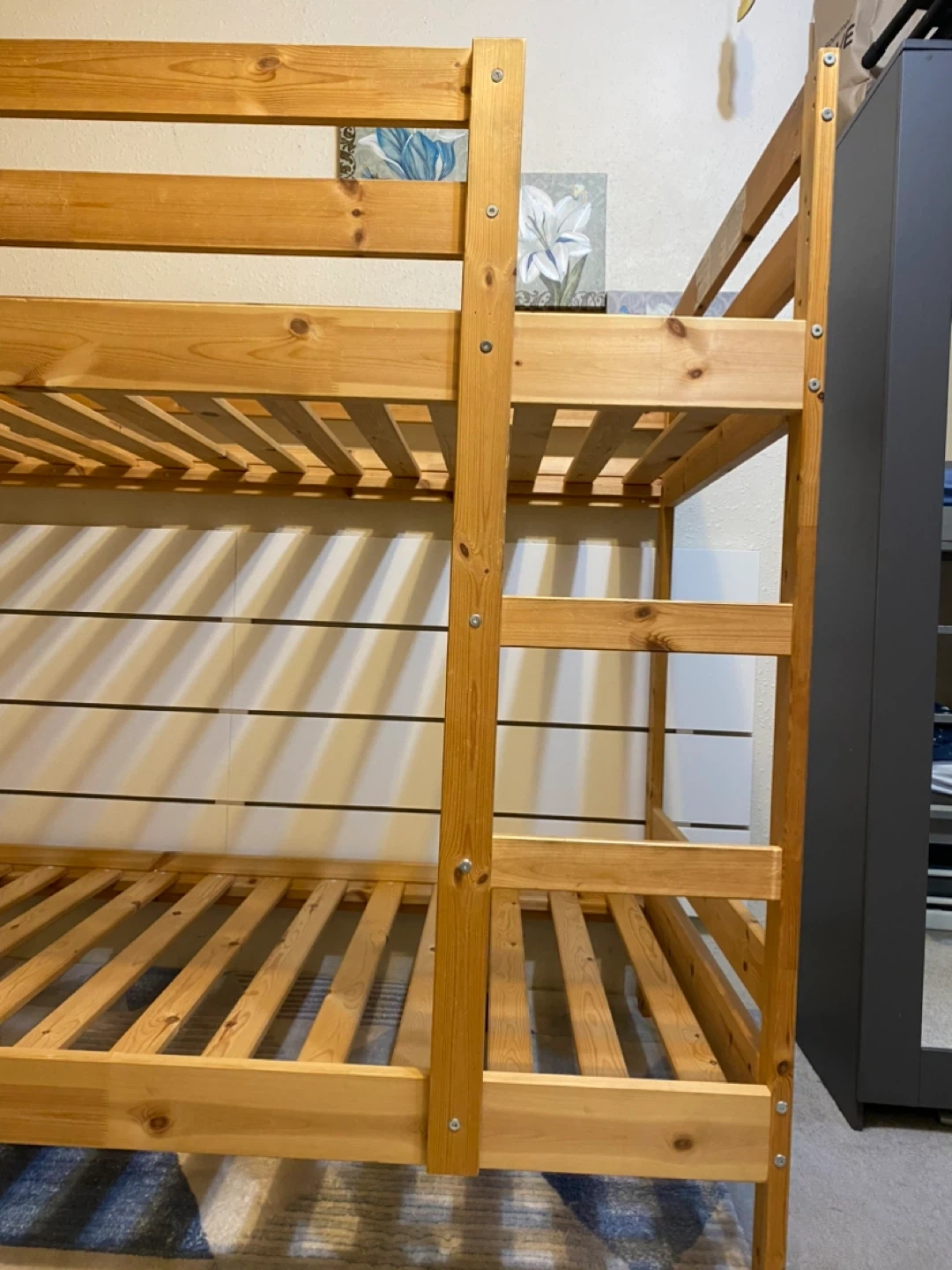 bunk bed in great shape very strong and sturdy and ready for a new home! Comes with all parts hardware plus guide. Pick up near surrey centre station or can deliver and assemble for extra .smoke and pet free (partially disassembled).