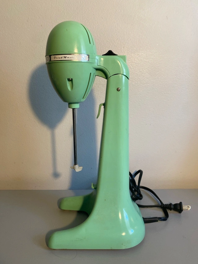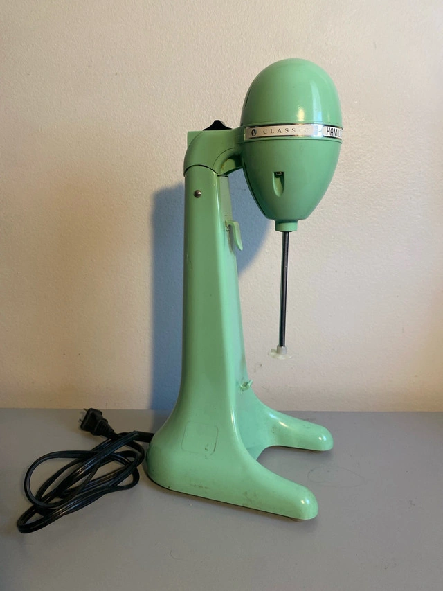 Mixing up a bit of nostalgia with this vintage Hamilton Beach Drink Master drink mixer! This charming, used milkshake maker features a classic design and a cool, retro vibe. While it shows some signs of its age, it still whips up a delightful froth for your favourite beverages. A perfect addition for collectors or anyone looking to add a touch of vintage flair to their kitchen. Here are some details: * Brand: Hamilton Beach * Model: Drink Master * Style: Vintage * Colour: Green The going rate for these mixers is about $75-$150. Based on condition I'm listing it at $85.