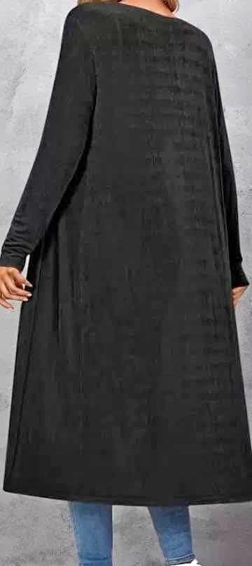 Never worn, open front full sleeve long shrug, medium stretch. Product details: Shoulder:16.3 in Length: 44.9 in Sleeve Length:23.9 in Bust:40.9 in Waist Size: 41.5 in Hip Size:43.7 in Cuff:8.9 in Colour: Black Fabric: 93%polyester, 7% elastane