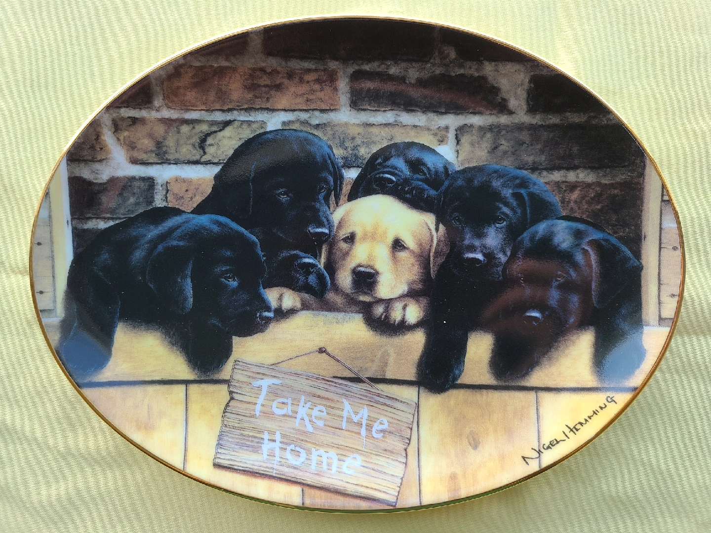 Selling a collection of Nigel Hemming collector plates from The Franklin Mint, featuring adorable Labrador Retriever dogs. These plates would make a lovely addition to any dog lover's home or collection. Five of the 6 have never been displayed and come with styrofoam boxes. The other was displayed very briefly. All in perfect condition. There are 3 plate stands to go with plates. 1. Take Me Home 2. Father's Pride and Joy 3. Free to a Good Home 4. Golden Companions 5. Sporting Companions 6. Royal Doulton, The Sporting Life Pick up only. No delivery. Price negotiable.
