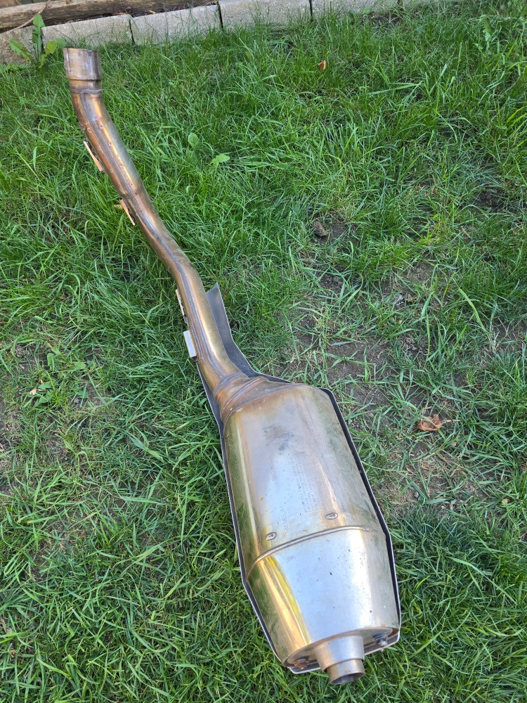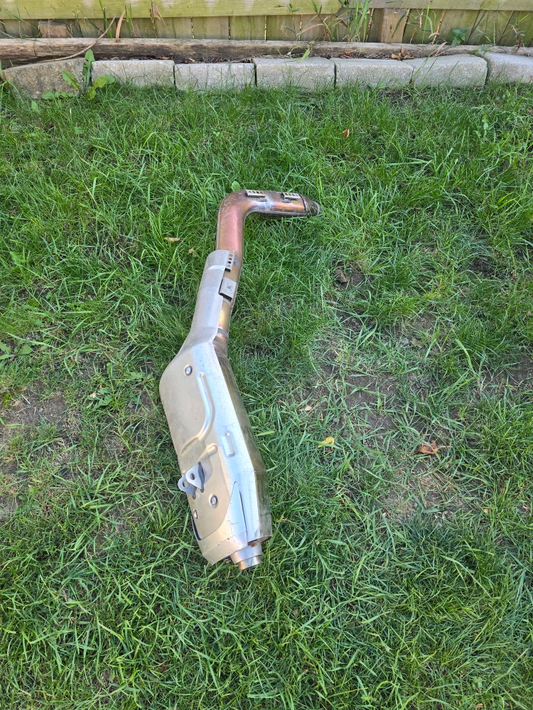 Selling a used Honda motorcycle exhaust system. It has some wear and tear, but is still functional. The model number is HM.MEE.A1. It meets EPA noise emission requirements for the following motorcycles: HONMEE0800. Please check the photos for condition 2003 CBR600RR original exhaust
