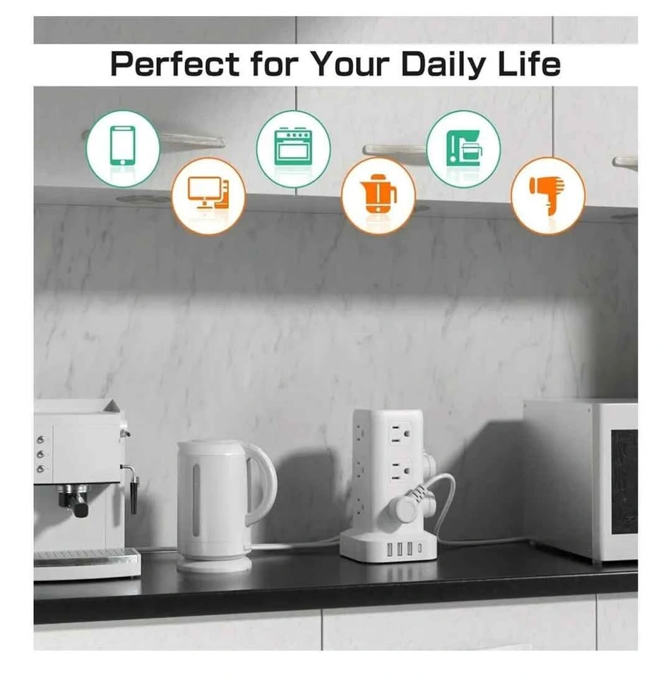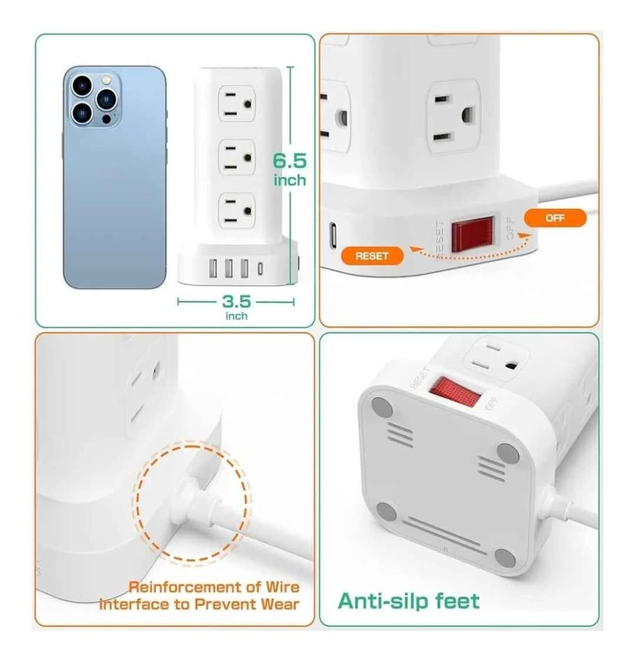 Power Strip Tower Surge Protector Power Strip with USB 12 Outlets with 4 USB Ports (1 USB C), Flat Plug 6FT Extension Cord Multi Plug Outlet Extender Overload Protection for Home Office SMALLRT Desktop power strip with 12 widely outlets & 4 smart usb charging ports to meet your different needs. It takes up little space on your desktop or floor and keep everything looking nice and organized. Suitable for home and office(For example: desk, sofa, meeting room, night stand, travel, etc.) In the event of power overload, the reliable safety switch will trip off automatically to protect your devices and your home. Extension Cord with Multiple Outlets is your best choice