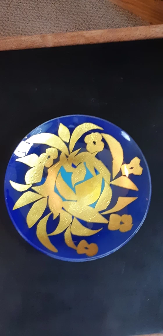 A beautiful Riva Sivan hand-made original plate It's inlaid with pure precious metals and was made in Tel-Aviv, Israel.