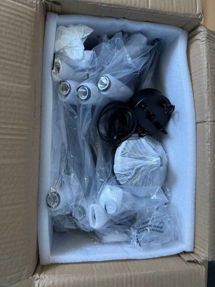 Brand new / great condition. Large 8-light round chandelier with wagon wheel design. Black vintage rustic industrial farmhouse style. Perfect for kitchen, living room, foyer, dining room, or hotel. UL listed for safety and quality.